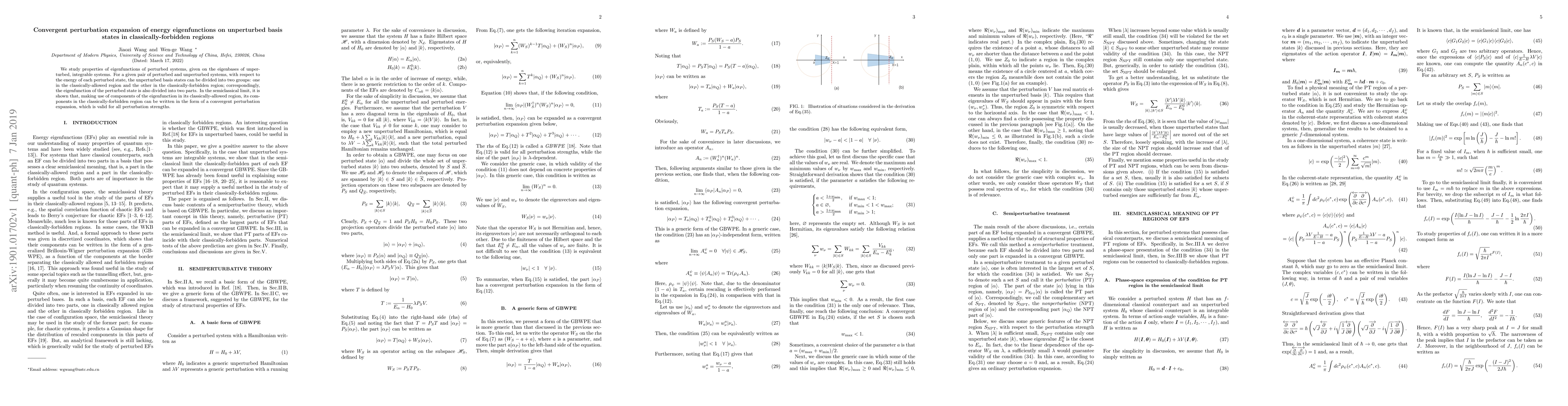 We study properties of eigenfunctions of perturbed systems, given on the eigenbases of unperturbed, integrable systems. For a given pair of perturbed and unperturbed systems, with respect to the energy of each perturbed state, the unperturbed basis states can be divided into two groups: one in the classically-allowed region and the other in the classically-forbidden region; correspondingly, the eigenfunction of the perturbed state is also divided into two parts. In the semiclassical limit, it is shown that, making use of components of the eigenfunction in its classically-allowed region, its components in the classically-forbidden region can be written in the form of a convergent perturbation expansion, which is valid for all perturbation strengths.