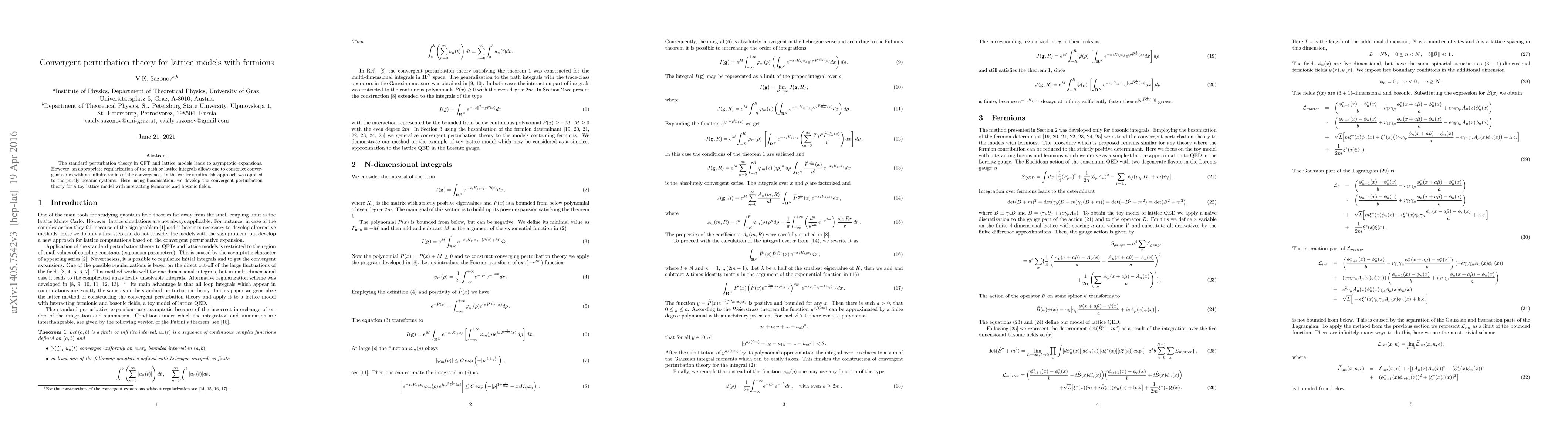 This paper develops a convergent perturbation theory for lattice models with fermions, extending earlier methods that were successful for bosonic systems. By employing bosonization, the authors construct convergent series with an infinite radius of convergence, providing a new approach to interacting fermionic and bosonic fields.