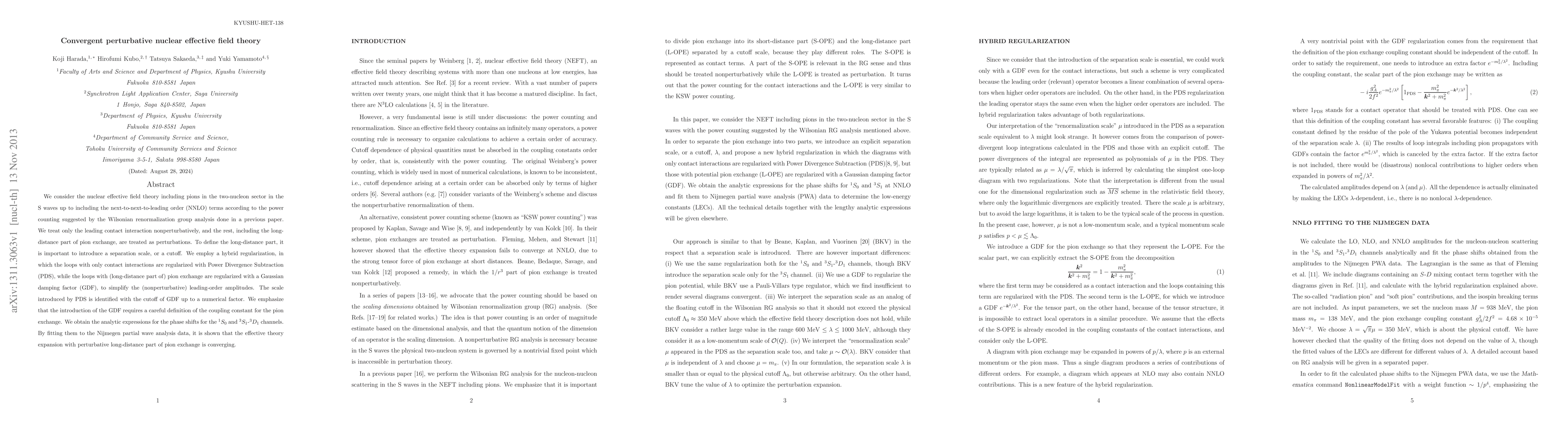 We consider the nuclear effective field theory including pions in the two-nucleon sector in the S waves up to including the next-to-next-to-leading order (NNLO) terms according to the power counting suggested by the Wilsonian renormalization group analysis done in a previous paper. We treat only the leading contact interaction nonperturbatively, and the rest, including the long-distance part of pion exchange, are treated as perturbations. To define the long-distance part, it is important to introduce a separation scale, or a cutoff. We employ a hybrid regularization, in which the loops with only contact interactions are regularized with Power Divergence Subtraction (PDS), while the loops with (long-distance part of) pion exchange are regularized with a Gaussian damping factor (GDF), to simplify the (nonperturbative) leading-order amplitudes. The scale introduced by PDS is identified with the cutoff of GDF up to a numerical factor. We emphasize that the introduction of the GDF requires a careful definition of the coupling constant for the pion exchange. We obtain the analytic expressions for the phase shifts for the $^1S_0$ and $^3S_1$-$^3D_1$ channels. By fitting them to the Nijmegen partial wave analysis data, it is shown that the effective theory expansion with perturbative long-distance part of pion exchange is converging.