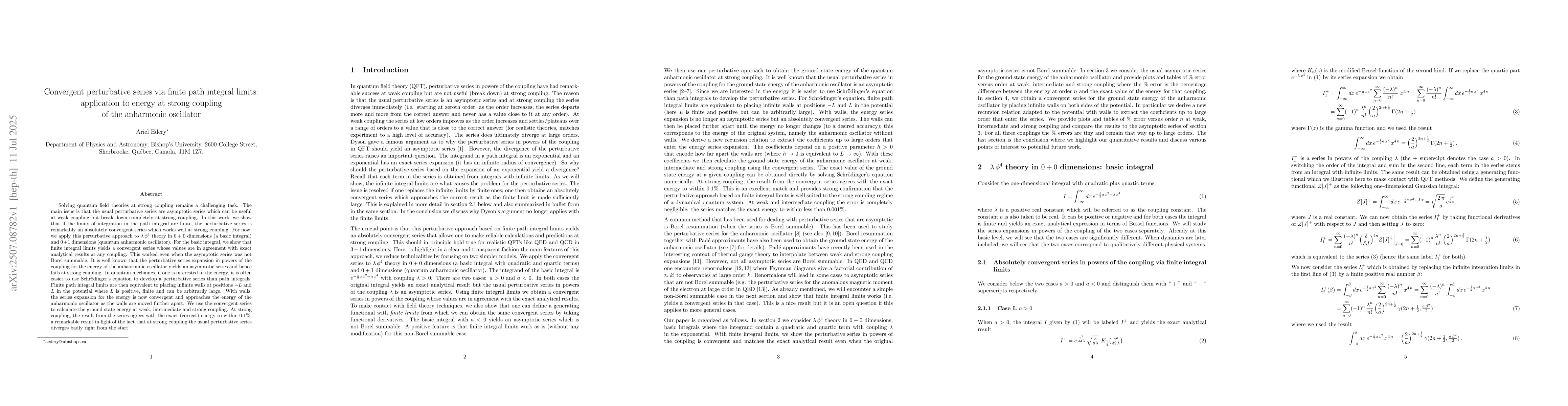 Solving quantum field theories at strong coupling remains a challenging task. The main issue is that the usual perturbative series are asymptotic series which can be useful at weak coupling but break down completely at strong coupling. In this work, we show that if the limits of integration in the path integral are finite, the perturbative series is remarkably an absolutely convergent series which works well at strong coupling. For now, we apply this perturbative approach to $\lambda \,\phi^4$ theory in 0+0 dimensions (a basic integral) and 0+1 dimensions (quantum anharmonic oscillator). For the basic integral, we show that finite integral limits yields a convergent series whose values are in agreement with exact analytical results at any coupling. This worked even when the asymptotic series was not Borel summable. It is well known that the perturbative series expansion in powers of the coupling for the energy of the anhaorminic oscillator yields an asymptotic series and hence fails at strong coupling. In quantum mechanics, if one is interested in the energy, it is often easier to use Schr\"odinger's equation to develop a perturbative series than path integrals. Finite path integral limits are then equivalent to placing infinite walls at positions -L and L in the potential where L is positive, finite and can be arbitrarily large. With walls, the series expansion for the energy is now convergent and approaches the energy of the anharmonic oscillator as the walls are moved further apart. We use the convergent series to calculate the ground state energy at weak, intermediate and strong coupling. At strong coupling, the result from the series agrees with the exact (correct) energy to within 0.1 %, a remarkable result in light of the fact that at strong coupling the usual perturbative series diverges badly right from the start.