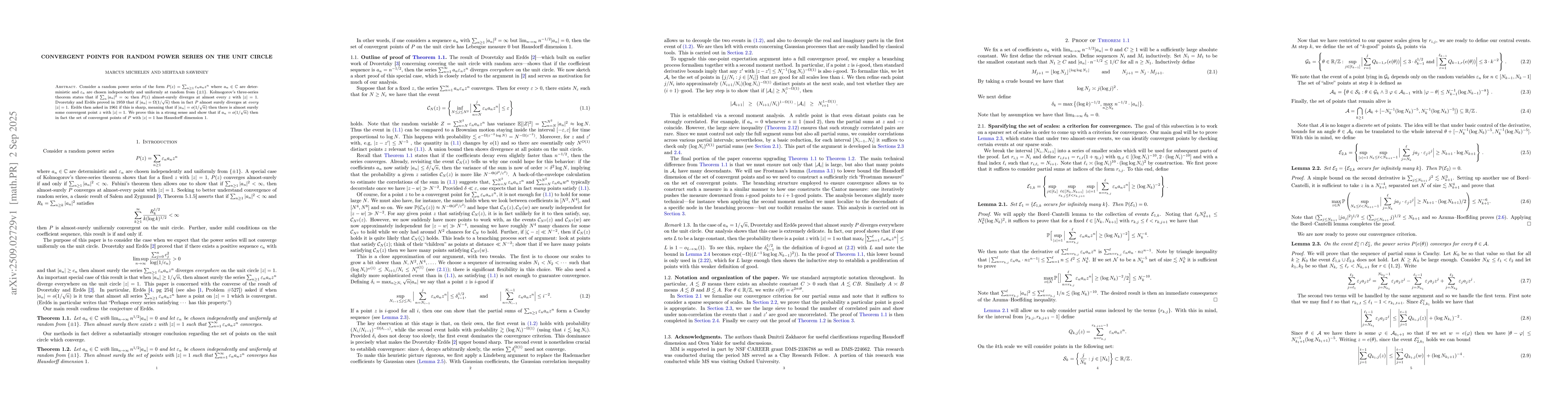 Consider a random power series of the form $P(z) = \sum_{n\ge 1} \varepsilon_n a_n z^{n}$ where $a_n \in \mathbb{C}$ are deterministic and $\varepsilon_n$ are chosen independently and uniformly at random from $\{\pm 1\}$. Kolmogorov's three-series theorem states that if $\sum_{n} |a_n|^2 = \infty$ then $P(z)$ almost-surely diverges at almost every $z$ with $|z| = 1$. Dvoretzky and Erd\H{o}s proved in 1959 that if $|a_n| = \Omega(1/\sqrt{n})$ then in fact $P$ almost surely diverges at every $|z| = 1$. Erd\H{o}s then asked in 1961 if this is sharp, meaning that if $|a_n| = o(1/\sqrt{n})$ then there is almost surely some convergent point $z$ with $|z| = 1$. We prove this in a strong sense and show that if $a_n = o(1/\sqrt{n})$ then in fact the set of convergent points of $P$ with $|z| = 1$ has Hausdorff dimension $1$.