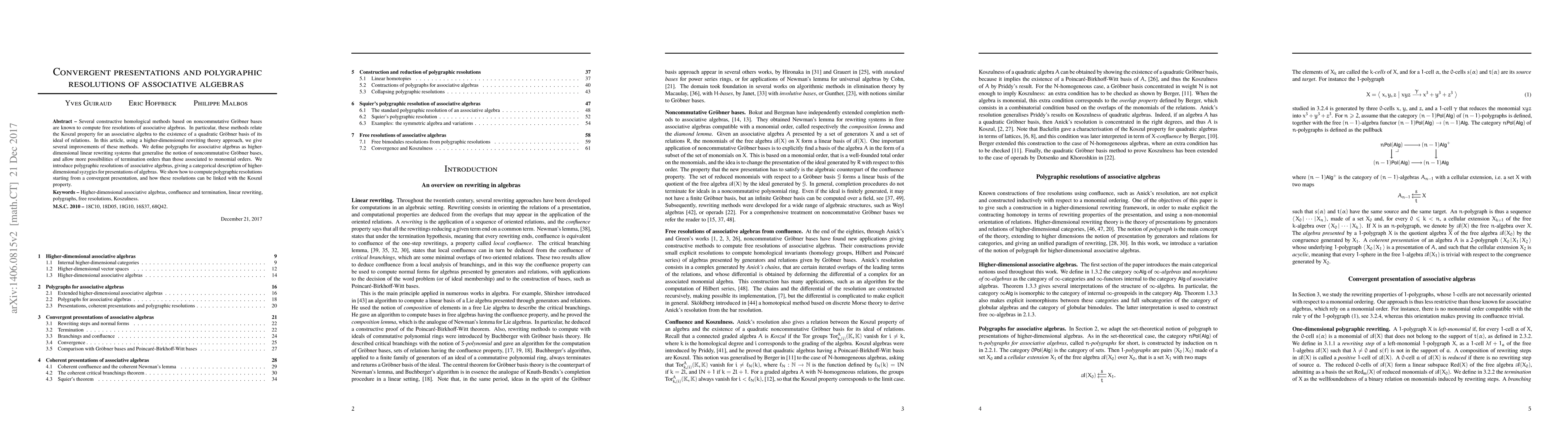 This paper introduces polygraphs as higher-dimensional rewriting systems for associative algebras, generalizing noncommutative Gröbner bases. It presents polygraphic resolutions to describe higher-dimensional syzygies and demonstrates their computation from convergent presentations, linking them to the Koszul property.