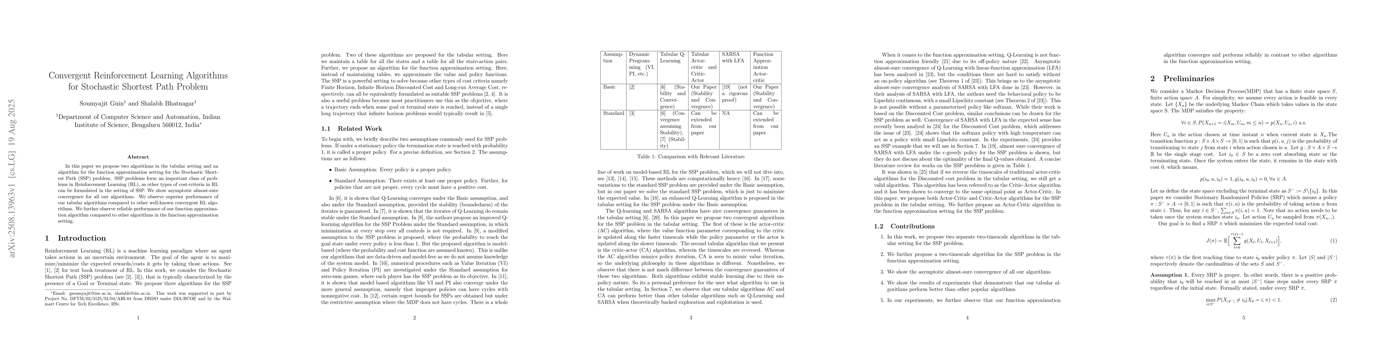 This paper introduces two convergent reinforcement learning algorithms for the Stochastic Shortest Path (SSP) problem in tabular settings and one for function approximation settings, demonstrating superior performance compared to existing algorithms.