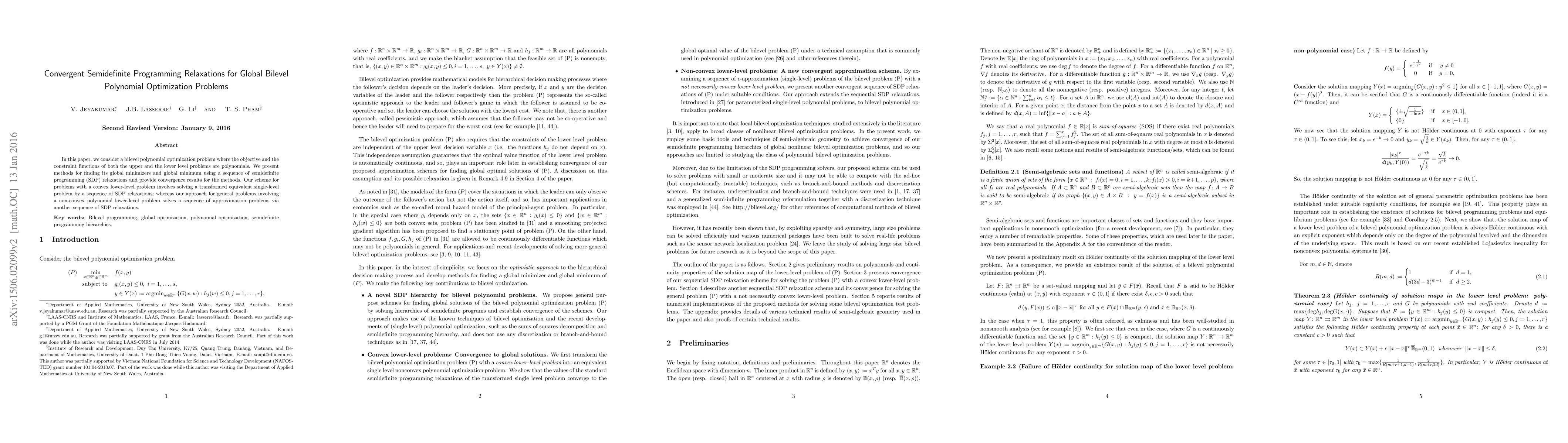 This paper proposes methods for solving global bilevel polynomial optimization problems using semidefinite programming (SDP) relaxations, providing convergence results. For convex lower-level problems, it transforms the bilevel problem into a single-level equivalent, while for non-convex problems, it employs a sequence of SDP relaxations to approximate the solution.