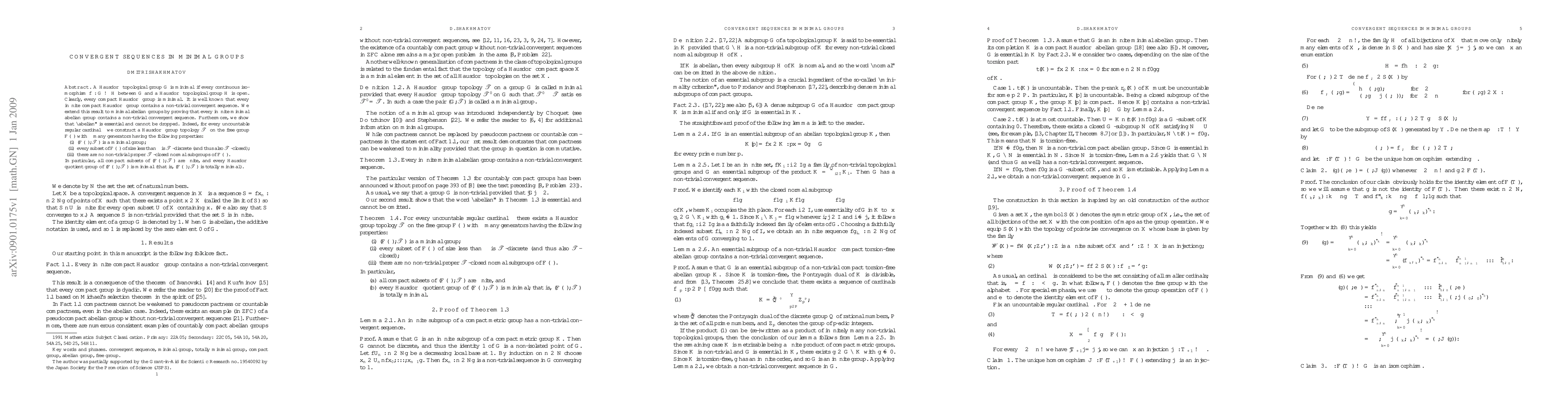 Infinite minimal abelian groups contain non-trivial convergent sequences, with the 'abelian' property being crucial for this result.