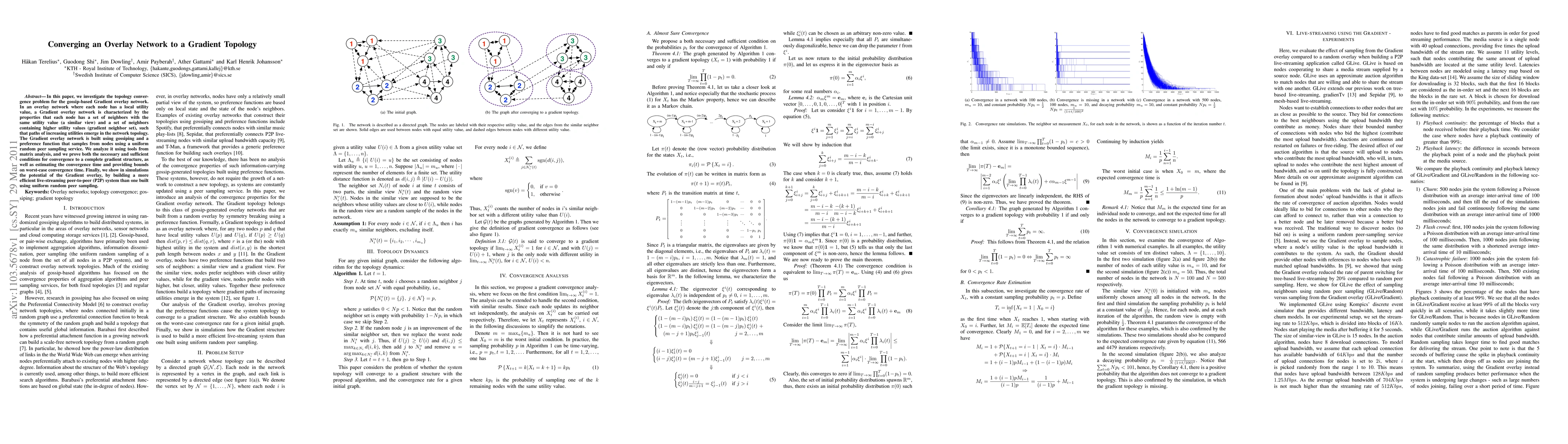 This paper explores the convergence of a Gradient overlay network, where nodes with similar utility values connect to form a gradient topology, using gossip-based methods. It analyzes convergence conditions and times, proving necessary and sufficient conditions, and demonstrates improved efficiency in a live-streaming P2P system.