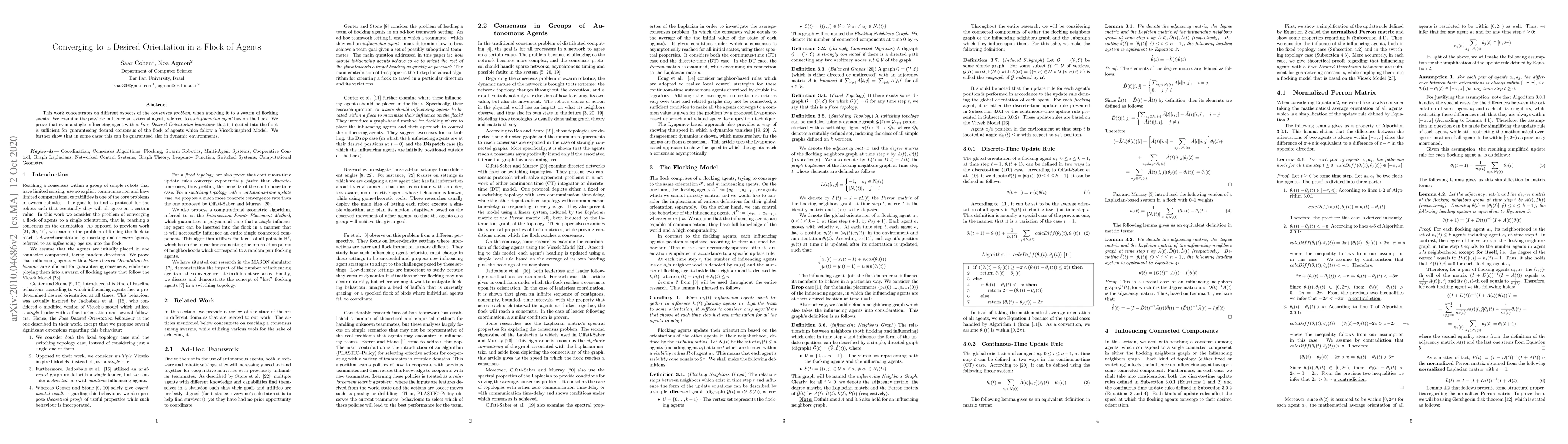 This research proves that a single influencing agent with a 'Face Desired Orientation' behavior can ensure a flock of agents reaches a desired consensus, even in dynamic environments. The study focuses on the consensus problem in swarm flocking, using a Vicsek-inspired model.