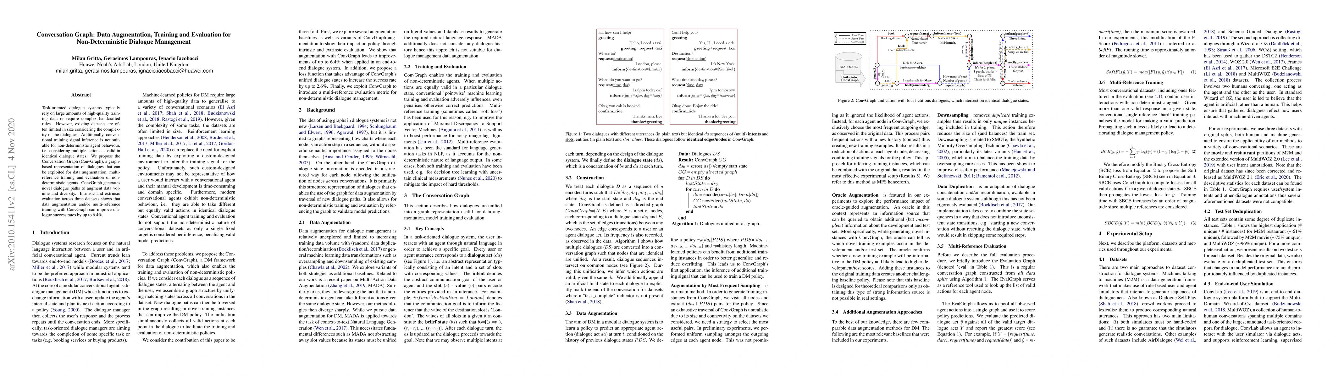 Task-oriented dialogue systems typically rely on large amounts of high-quality training data or require complex handcrafted rules. However, existing datasets are often limited in size considering the complexity of the dialogues. Additionally, conventional training signal inference is not suitable for non-deterministic agent behaviour, i.e. considering multiple actions as valid in identical dialogue states. We propose the Conversation Graph (ConvGraph), a graph-based representation of dialogues that can be exploited for data augmentation, multi-reference training and evaluation of non-deterministic agents. ConvGraph generates novel dialogue paths to augment data volume and diversity. Intrinsic and extrinsic evaluation across three datasets shows that data augmentation and/or multi-reference training with ConvGraph can improve dialogue success rates by up to 6.4%.