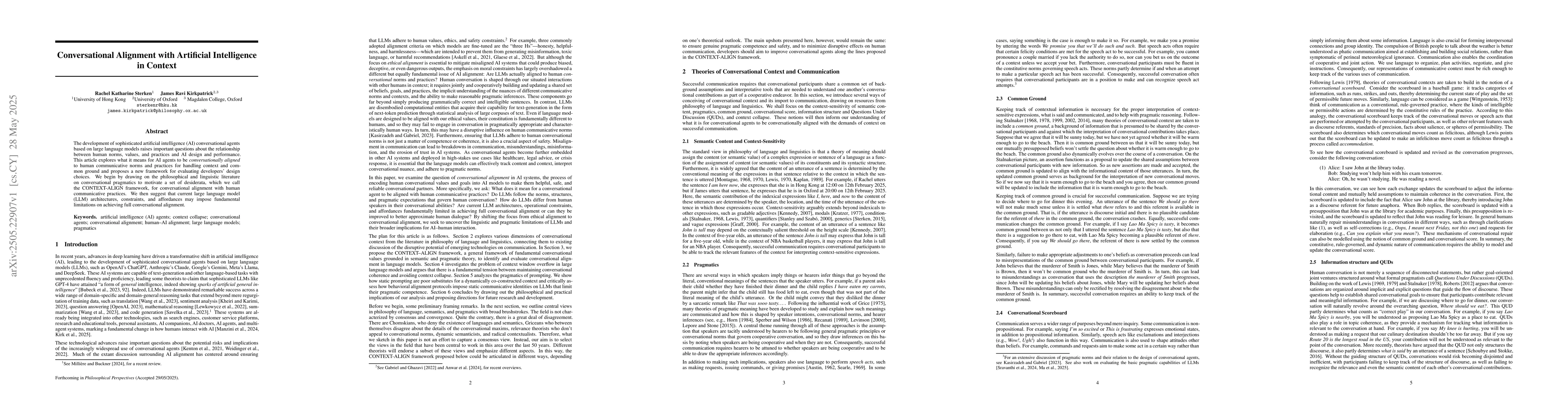 The paper draws on philosophical and linguistic literature on conversational pragmatics to develop the CONTEXT-ALIGN framework for evaluating conversational alignment of AI with human communicative practices.