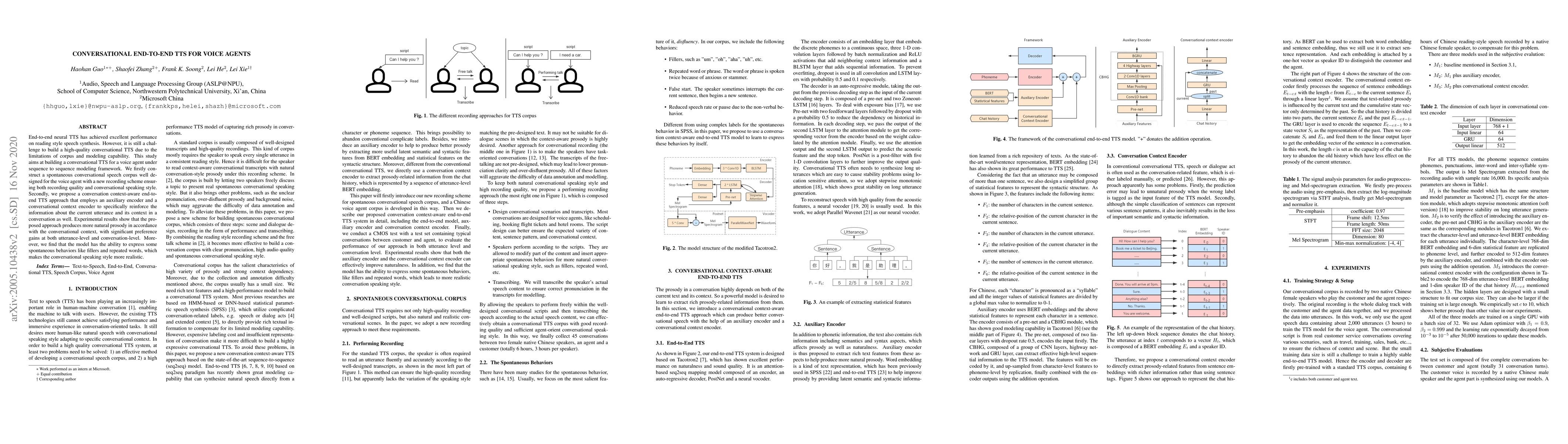 This study constructs a conversational TTS system for a voice agent using a sequence-to-sequence framework, featuring a new corpus and a context-aware end-to-end approach, resulting in more natural prosody and realistic conversational behaviors. Experimental results demonstrate significant preference gains in naturalness and contextual awareness.
