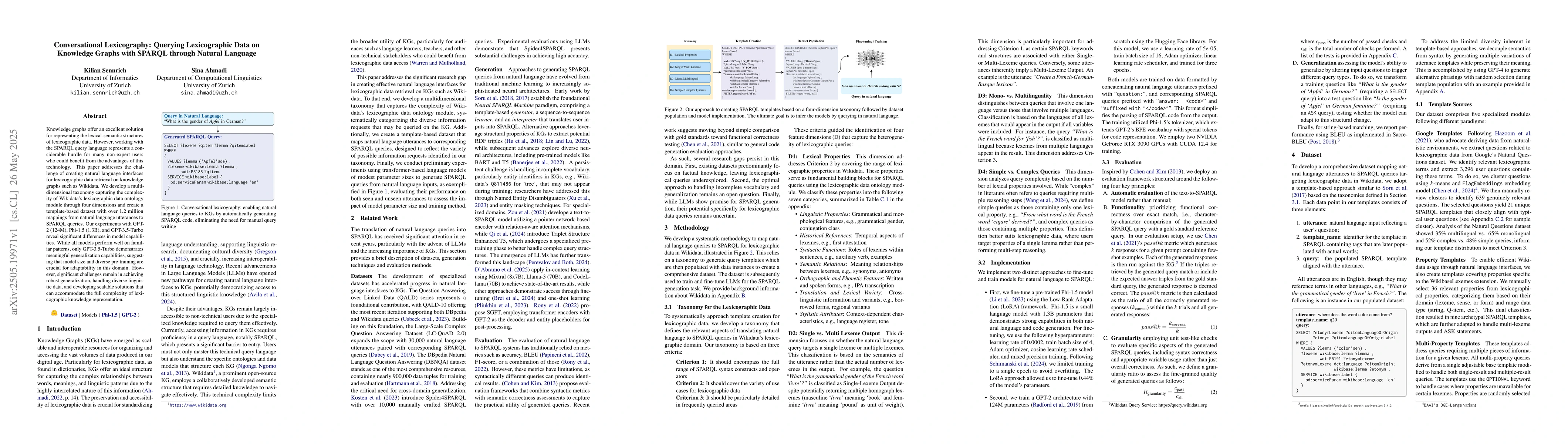 Researchers developed a natural language interface for querying lexicographic data on knowledge graphs like Wikidata using SPARQL, finding that larger models with diverse pre-training perform better in generalization.