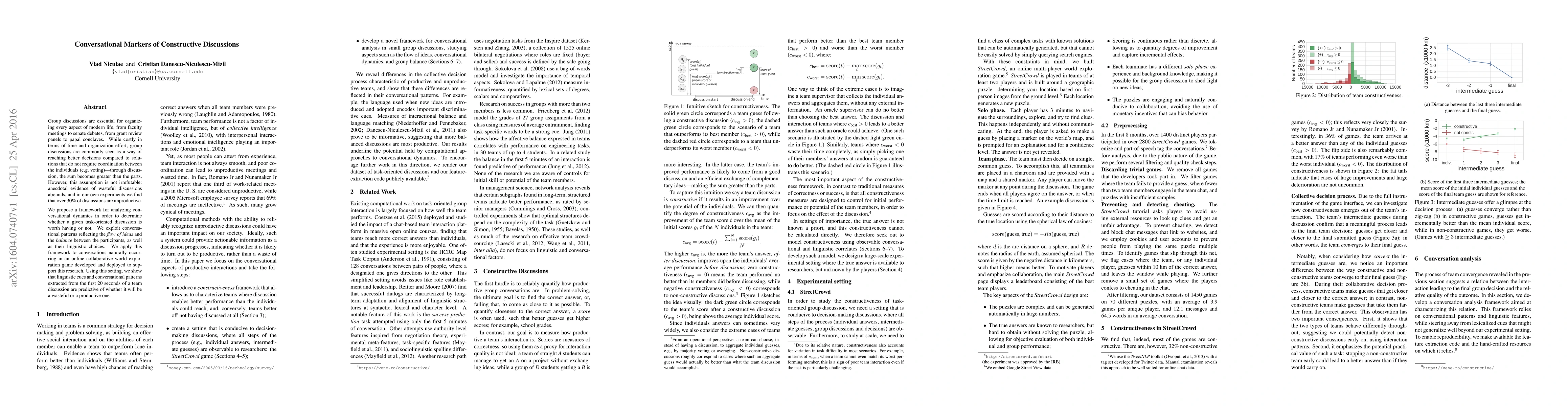 This paper proposes a framework to analyze conversational dynamics in group discussions to determine their productivity, focusing on linguistic cues and conversational patterns. It demonstrates that early conversational markers in a collaborative game can predict whether a discussion will be productive or wasteful.