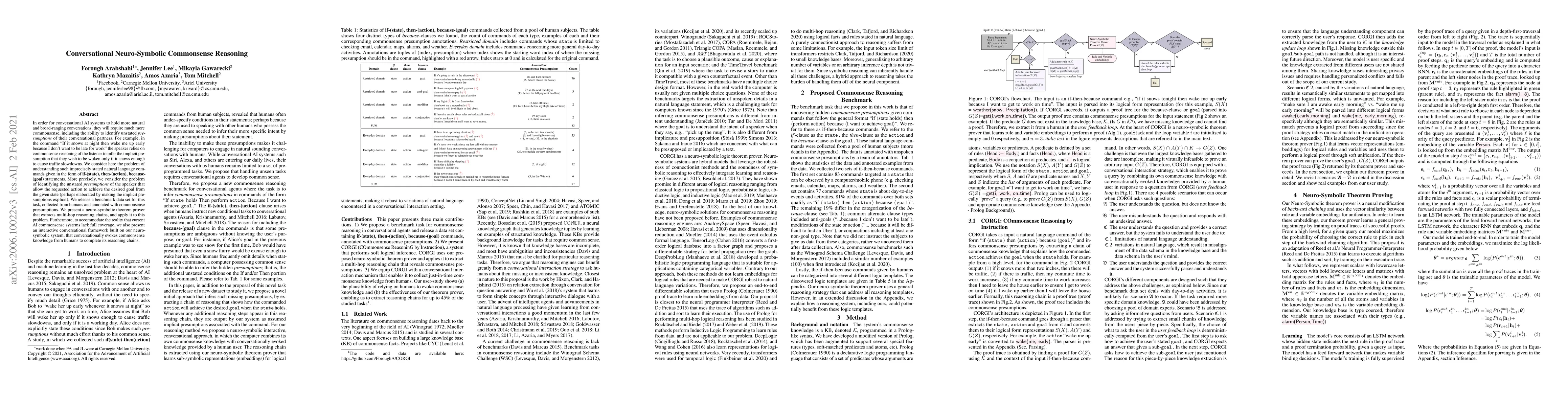 In order for conversational AI systems to hold more natural and broad-ranging conversations, they will require much more commonsense, including the ability to identify unstated presumptions of their conversational partners. For example, in the command "If it snows at night then wake me up early because I don't want to be late for work" the speaker relies on commonsense reasoning of the listener to infer the implicit presumption that they wish to be woken only if it snows enough to cause traffic slowdowns. We consider here the problem of understanding such imprecisely stated natural language commands given in the form of "if-(state), then-(action), because-(goal)" statements. More precisely, we consider the problem of identifying the unstated presumptions of the speaker that allow the requested action to achieve the desired goal from the given state (perhaps elaborated by making the implicit presumptions explicit). We release a benchmark data set for this task, collected from humans and annotated with commonsense presumptions. We present a neuro-symbolic theorem prover that extracts multi-hop reasoning chains, and apply it to this problem. Furthermore, to accommodate the reality that current AI commonsense systems lack full coverage, we also present an interactive conversational framework built on our neuro-symbolic system, that conversationally evokes commonsense knowledge from humans to complete its reasoning chains.
