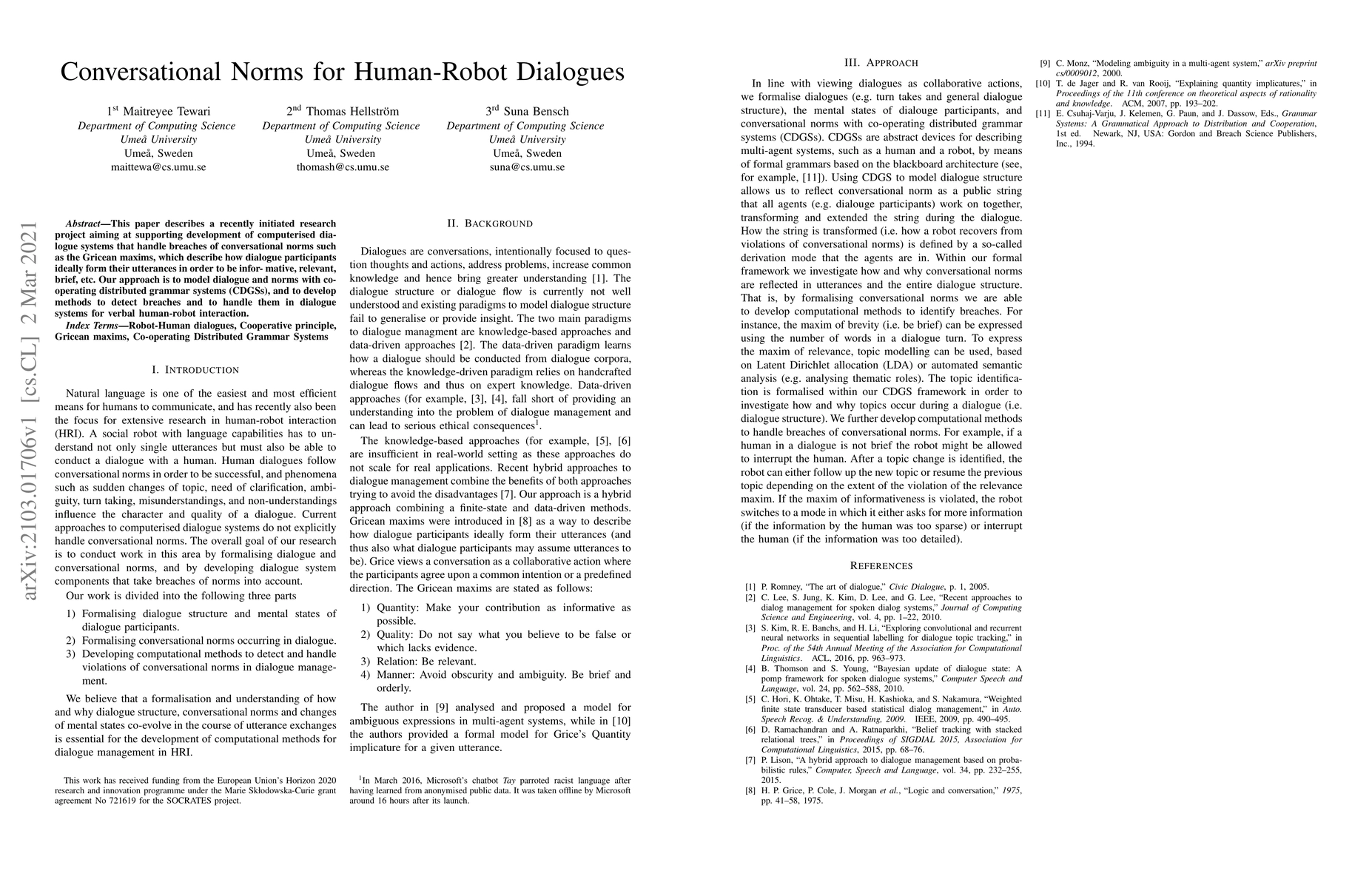 This paper describes a recently initiated research project aiming at supporting development of computerised dialogue systems that handle breaches of conversational norms such as the Gricean maxims, which describe how dialogue participants ideally form their utterances in order to be informative, relevant, brief, etc. Our approach is to model dialogue and norms with co-operating distributed grammar systems (CDGSs), and to develop methods to detect breaches and to handle them in dialogue systems for verbal human-robot interaction.