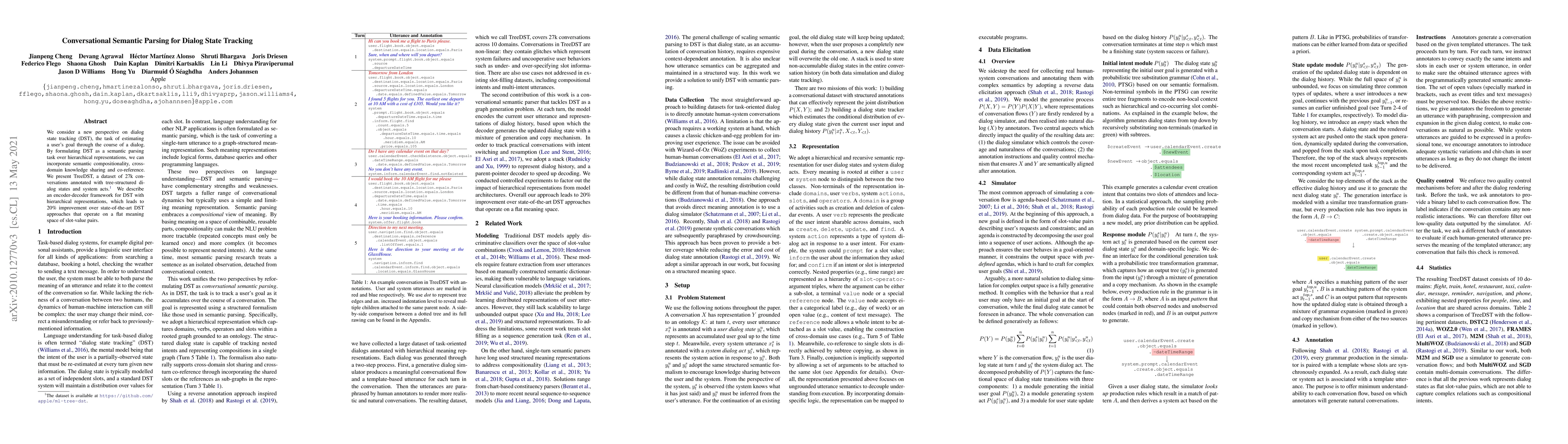 This paper proposes a novel semantic parsing approach for dialog state tracking (DST) using hierarchical representations, achieving a 20% improvement over existing methods. It introduces TreeDST, a dataset with annotated tree-structured dialog states, and an encoder-decoder framework that leverages semantic compositionality and cross-domain knowledge sharing.