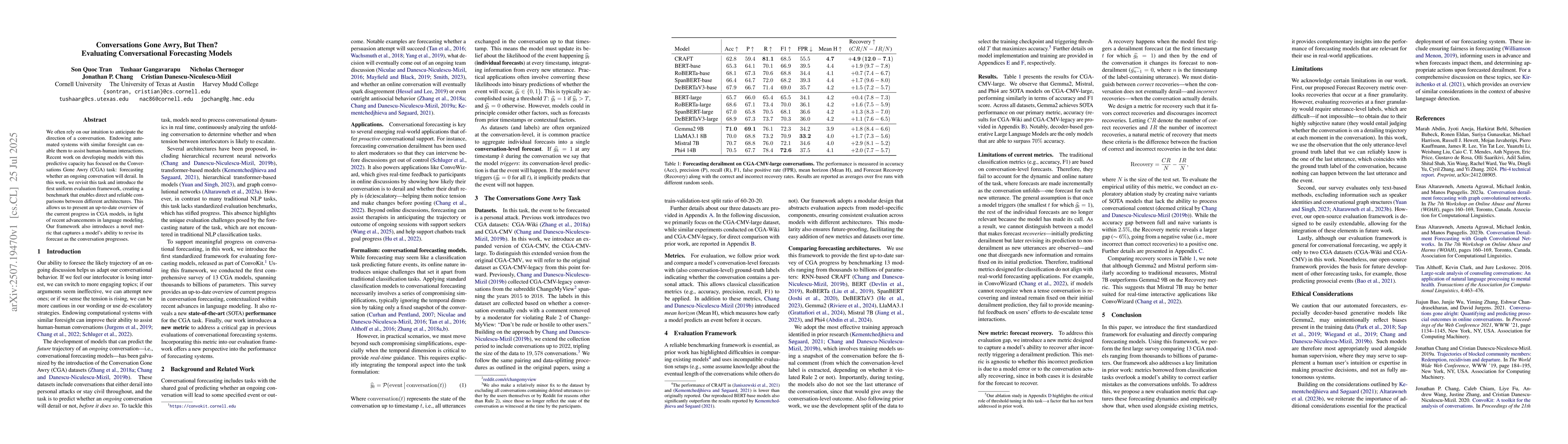 We often rely on our intuition to anticipate the direction of a conversation. Endowing automated systems with similar foresight can enable them to assist human-human interactions. Recent work on developing models with this predictive capacity has focused on the Conversations Gone Awry (CGA) task: forecasting whether an ongoing conversation will derail. In this work, we revisit this task and introduce the first uniform evaluation framework, creating a benchmark that enables direct and reliable comparisons between different architectures. This allows us to present an up-to-date overview of the current progress in CGA models, in light of recent advancements in language modeling. Our framework also introduces a novel metric that captures a model's ability to revise its forecast as the conversation progresses.