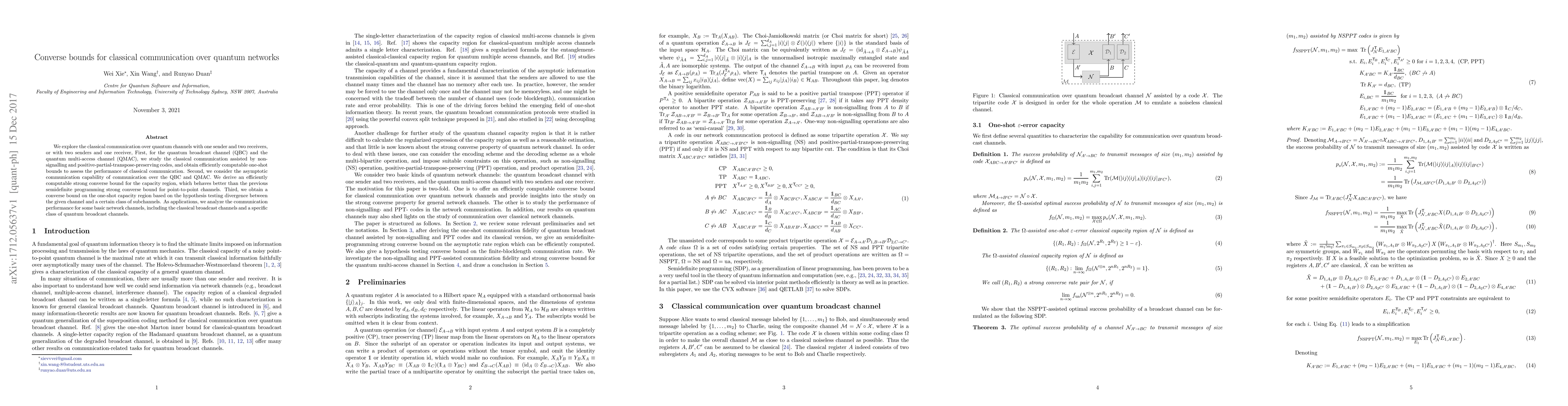 This paper investigates classical communication over quantum networks, deriving new converse bounds for quantum broadcast and multi-access channels. It introduces efficiently computable one-shot bounds and a strong converse bound for the capacity region, outperforming previous methods.