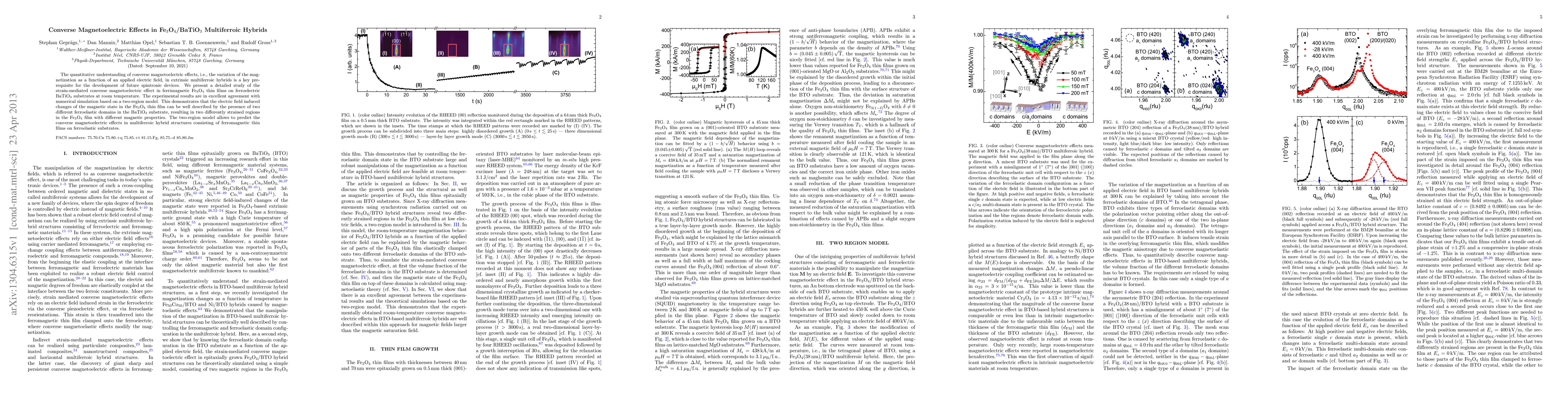 This study investigates the strain-mediated converse magnetoelectric effect in Fe3O4/BaTiO3 multiferroic hybrids, demonstrating that electric field-induced changes in magnetization are due to different ferroelastic domains in the BaTiO3 substrate affecting the Fe3O4 thin film's magnetic properties. A two-region model successfully predicts these effects, highlighting its potential for future spintronic devices.