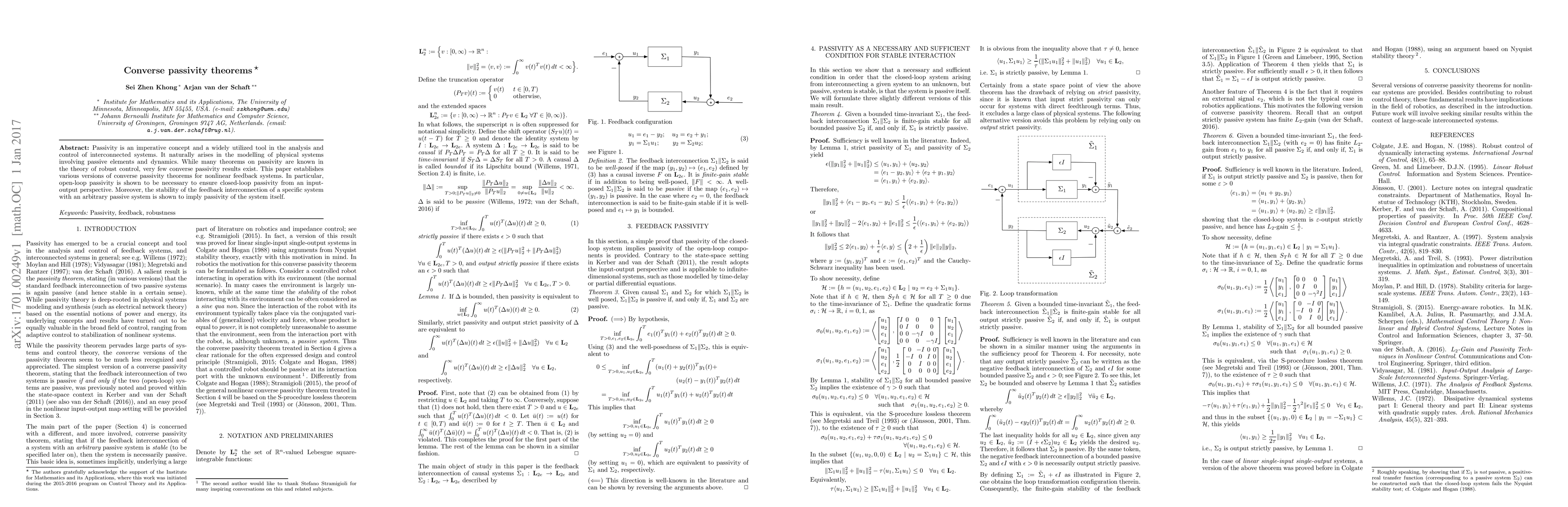 This paper develops converse passivity theorems for nonlinear feedback systems, demonstrating that open-loop passivity is necessary for closed-loop passivity, and that the stability of a specific system's feedback interconnection with a passive system implies the original system's passivity.