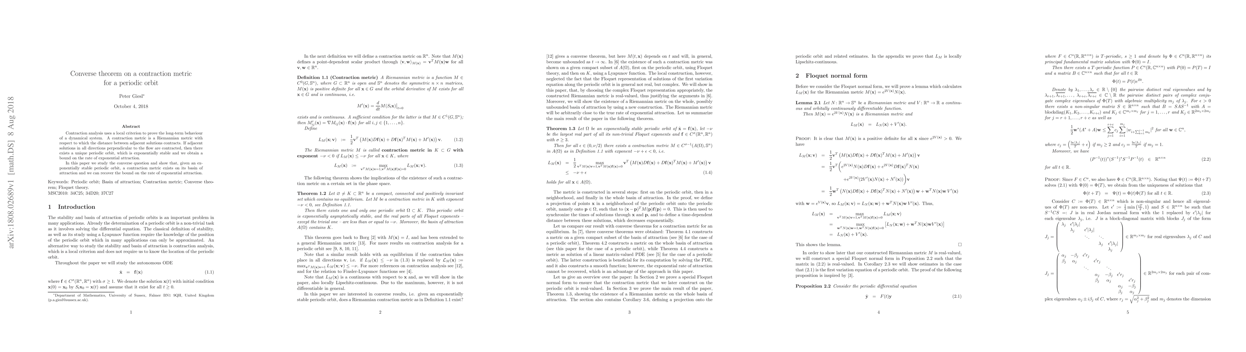 Contraction analysis uses a local criterion to prove the long-term behaviour of a dynamical system. A contraction metric is a Riemannian metric with respect to which the distance between adjacent solutions contracts. If adjacent solutions in all directions perpendicular to the flow are contracted, then there exists a unique periodic orbit, which is exponentially stable and we obtain a bound on the rate of exponential attraction. In this paper we study the converse question and show that, given an exponentially stable periodic orbit, a contraction metric exists on its basin of attraction and we can recover the bound on the rate of exponential attraction.