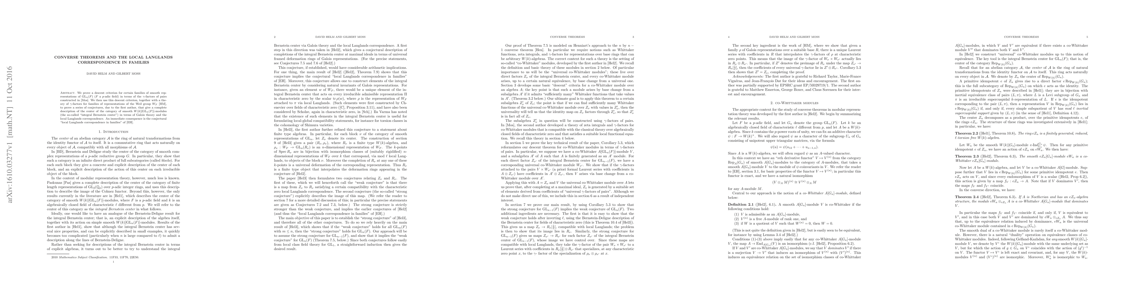 The paper establishes a descent criterion for families of smooth GL_n(F) representations using gamma factors, and leverages this to prove conjectures describing the integral Bernstein center via Galois theory and the local Langlands correspondence, supporting the "local Langlands correspondence in families."