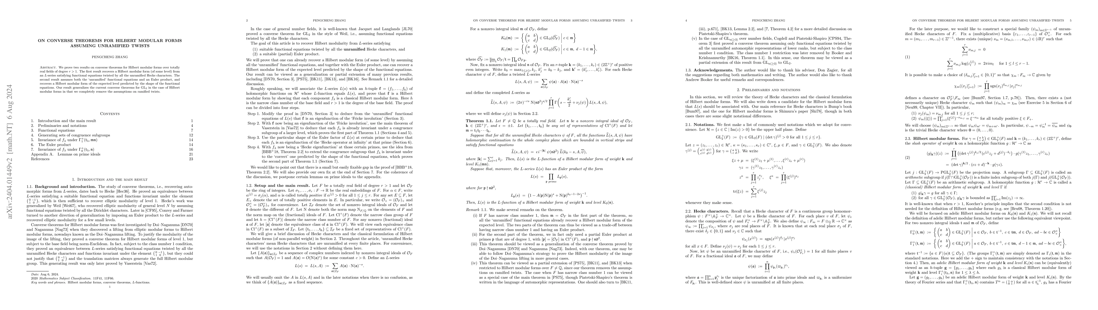 Summary: This paper proves two converse theorems for Hilbert modular forms of higher levels, recovering specific forms from $L$-series data, one using twisted functional equations by unramified Hecke characters and the other utilizing both functional equations and an Euler product to determine the exact level.