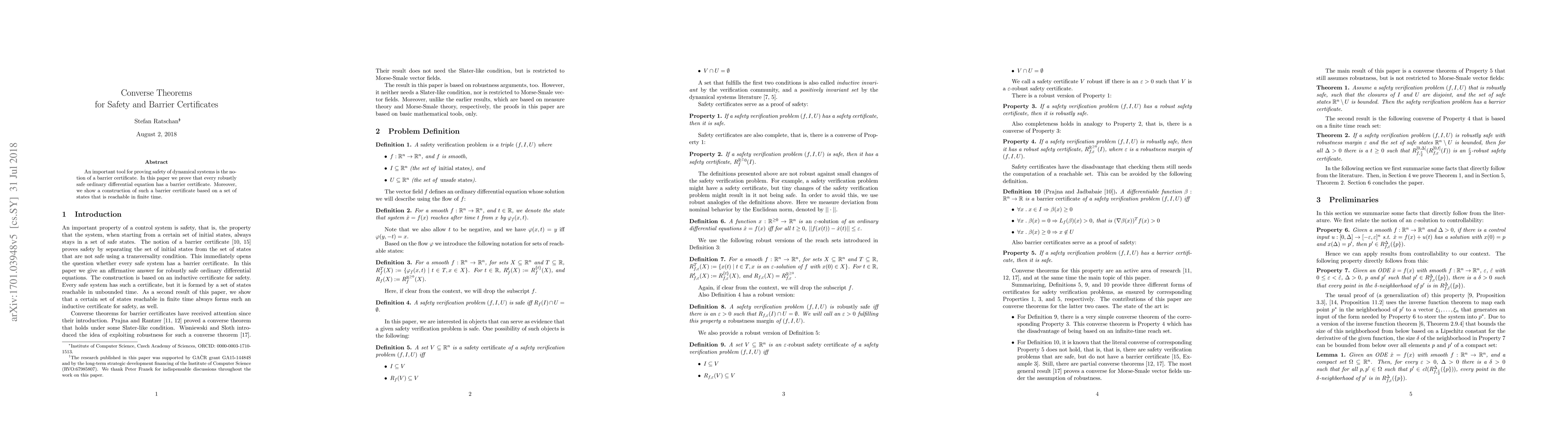 Researchers prove that every robustly safe ordinary differential equation has a barrier certificate, which is constructible based on states reachable in finite time, improving safety verification for dynamical systems.