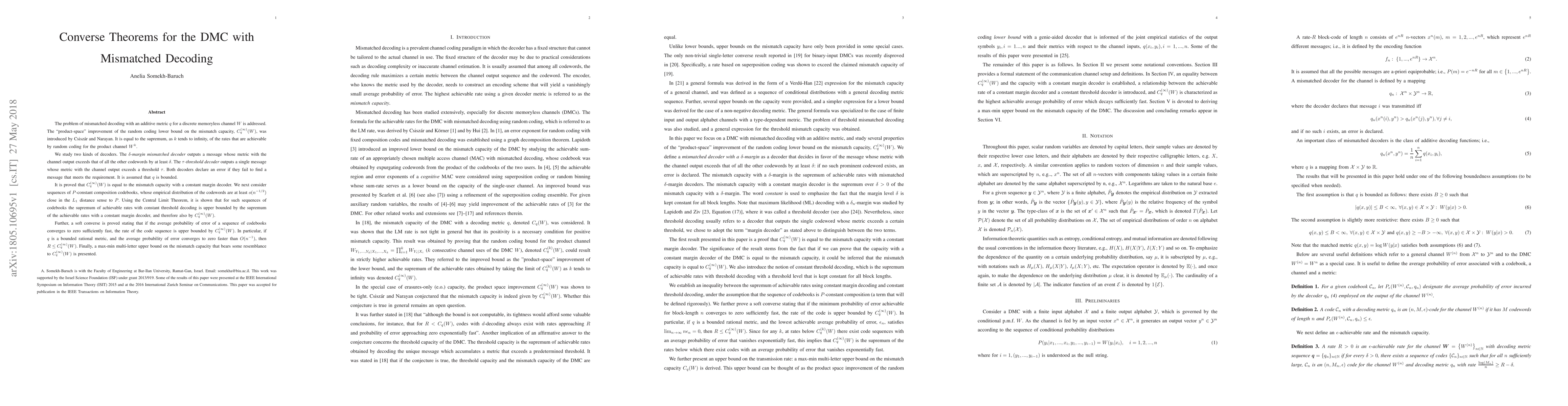 Researchers studied mismatched decoding in discrete memoryless channels, finding that the optimal decoder's rate is limited by a constant margin decoder, and that fast convergence of error rates can also bound the optimal rate.