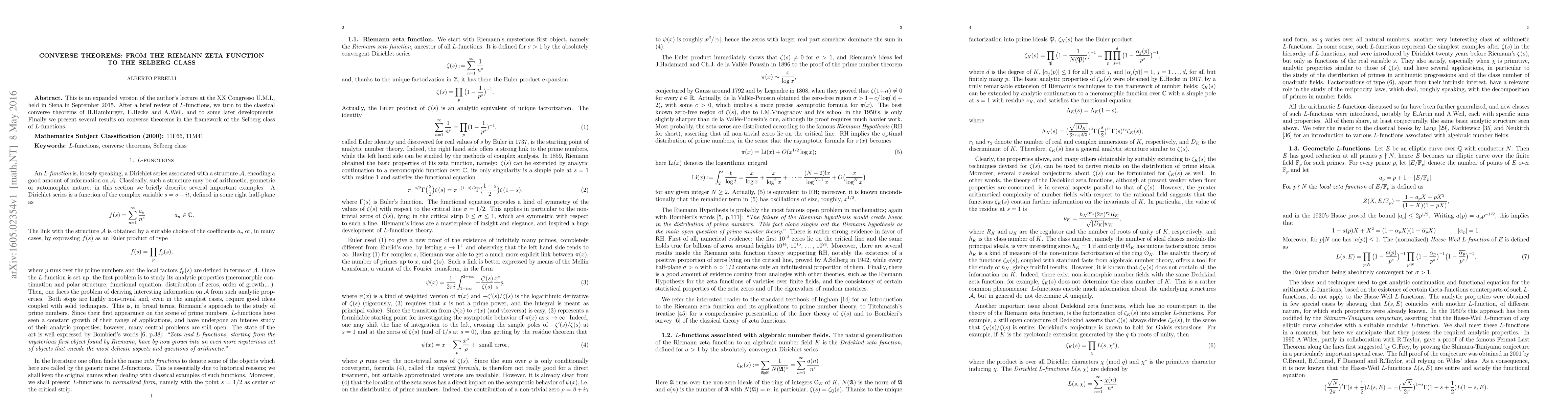 This is an expanded version of the author's lecture at the XX Congresso U.M.I., held in Siena in September 2015. After a brief review of L-functions, we turn to the classical converse theorems of H.Hamburger, E.Hecke and A.Weil, and to some later developments. Finally we present several results on converse theorems in the framework of the Selberg class of L-functions.