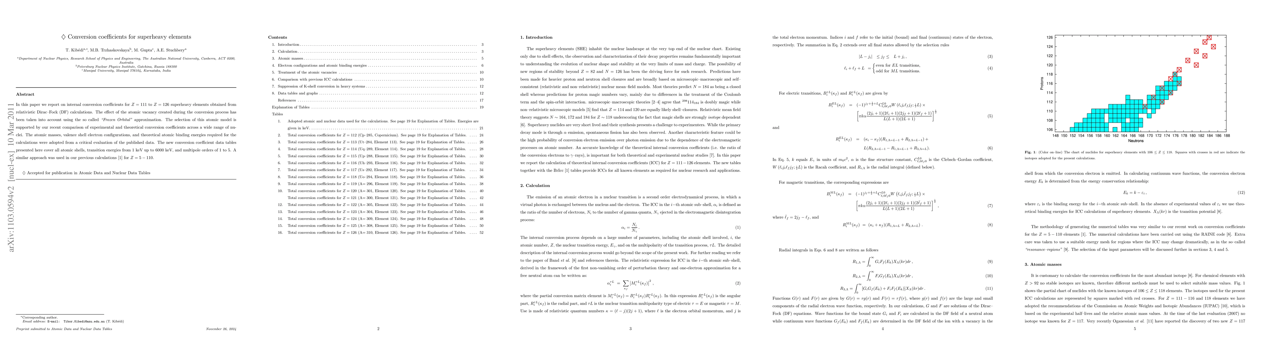 Researchers calculated internal conversion coefficients for superheavy elements with atomic numbers 111 to 126 using relativistic Dirac-Fock calculations, providing new data on transition energies and multipole orders.