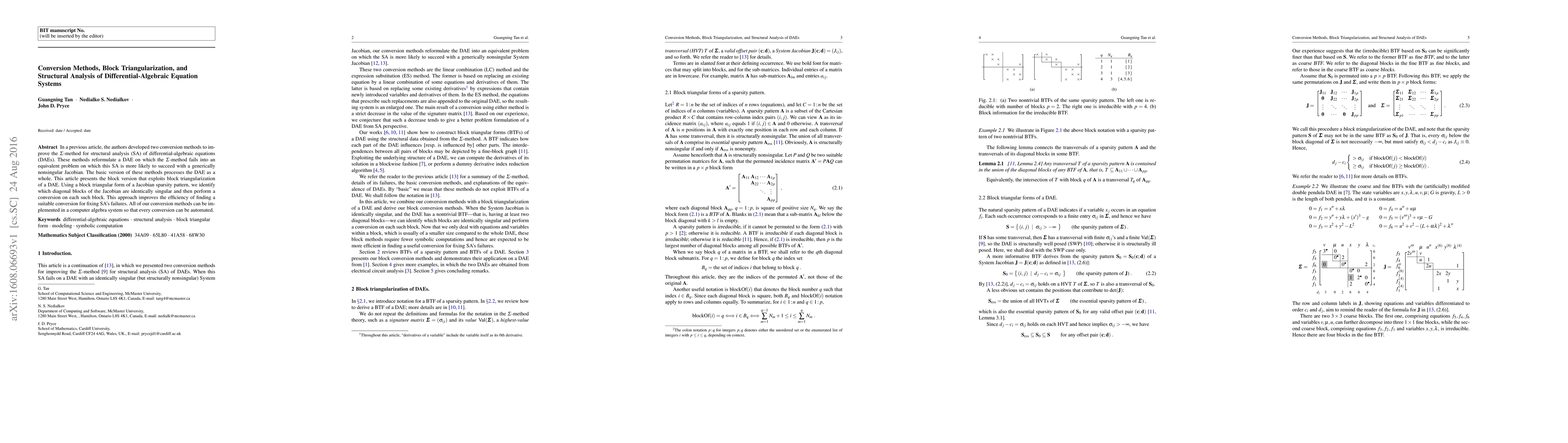 This paper introduces a block-triangularization method to enhance the $\Sigma$-method for structural analysis of differential-algebraic equations (DAEs). The authors refine their previous conversion techniques by focusing on block-triangular forms to improve efficiency and identify singular blocks for targeted conversion.