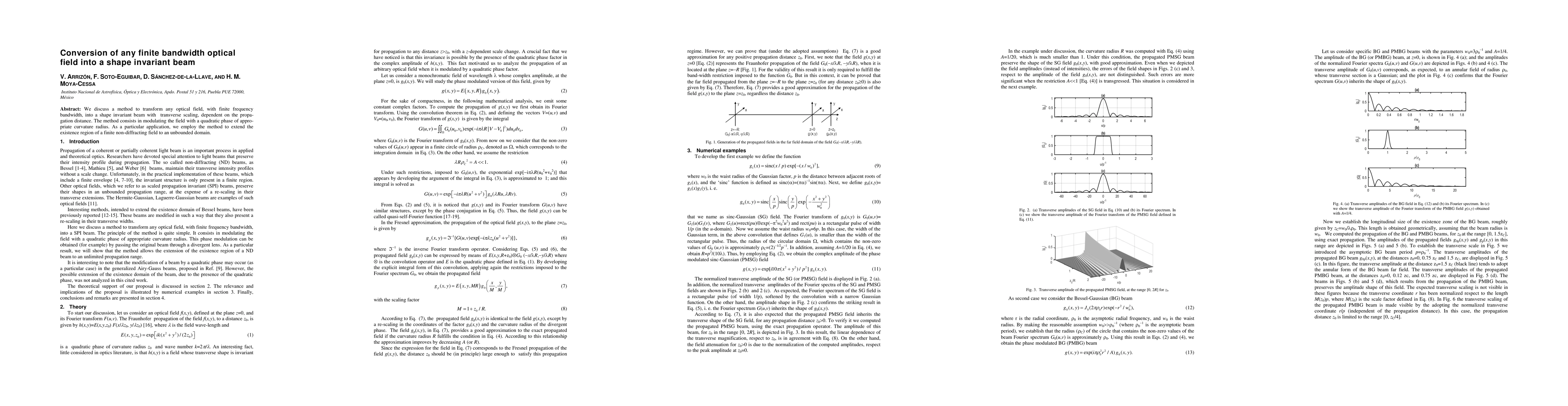 We discuss a method to transform any optical field, with finite frequency bandwidth, into a shape invariant beam with transverse scaling, dependent on the propagation distance. The method consists in modulating the field with a quadratic phase of appropriate curvature radius. As a particular application, we employ the method to extend the existence region of a finite non-diffracting field to an unbounded domain.