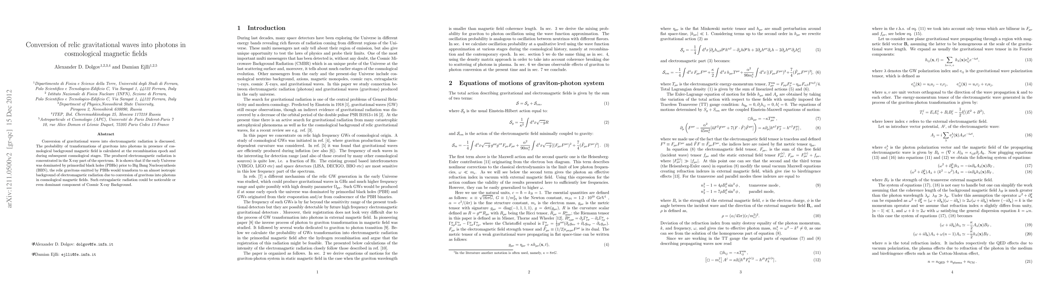 This paper investigates the conversion of relic gravitational waves into photons in the presence of cosmological magnetic fields, finding that such transformations are probable at the recombination epoch and later stages. If the early Universe was dominated by primordial black holes, the resulting electromagnetic radiation could significantly contribute to the Cosmic X-ray Background.