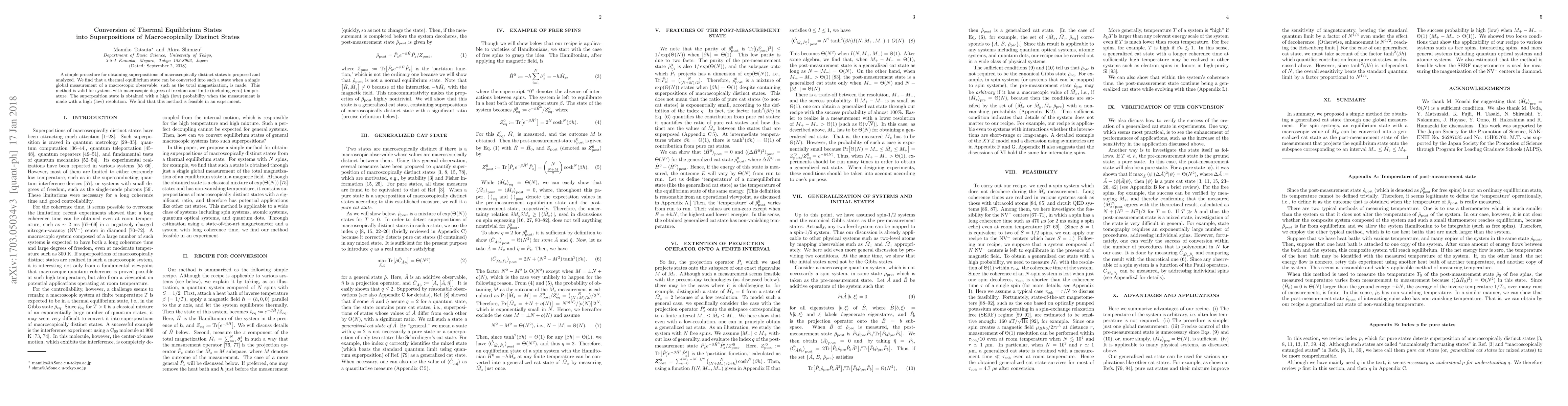 This paper proposes a method to convert thermal equilibrium states into superpositions of macroscopically distinct states via a single global measurement of a macroscopic observable. The feasibility of this method is demonstrated for systems with macroscopic degrees of freedom at finite temperatures, showing that higher measurement resolution yields higher probabilities of obtaining the desired superposition state.
