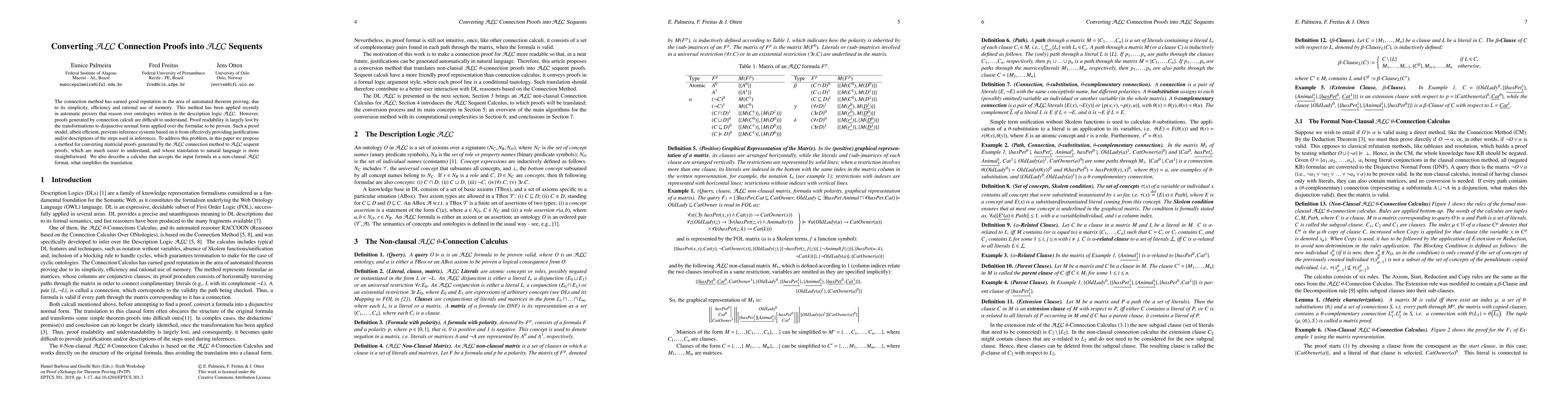 This paper proposes a method to convert matricial proofs from the ALC connection method into ALC sequent proofs, enhancing proof readability and facilitating natural language descriptions of inference steps. The proposed calculus simplifies the translation process by accepting non-clausal ALC input formulas.