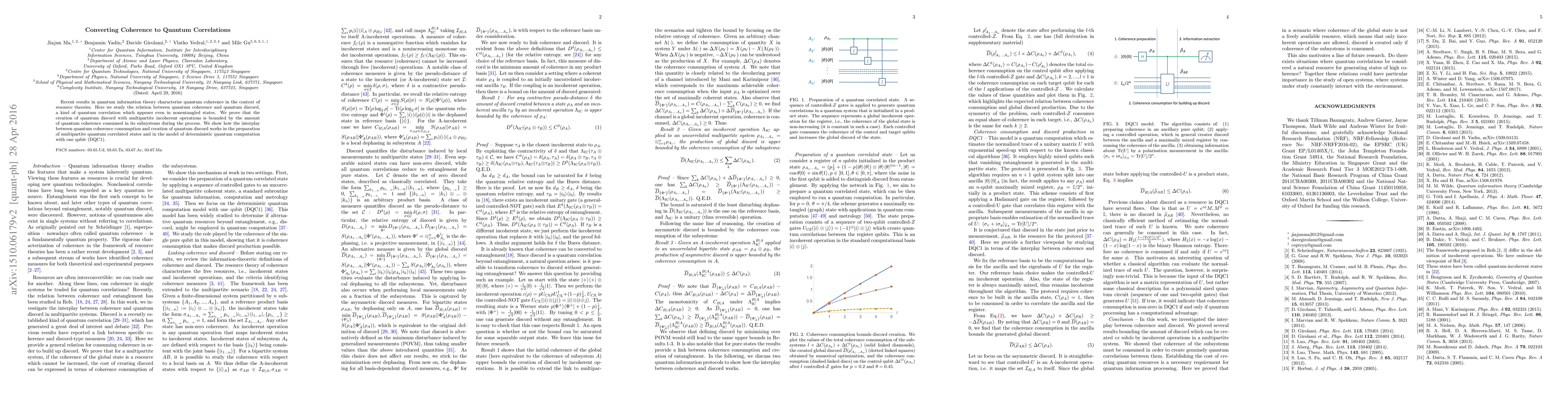 This paper investigates the relationship between quantum coherence and quantum discord, demonstrating that the creation of quantum discord via multipartite incoherent operations is limited by the coherence consumed in the subsystems. It highlights the interplay between coherence consumption and discord creation in preparing multipartite quantum correlated states and in deterministic quantum computation with one qubit.