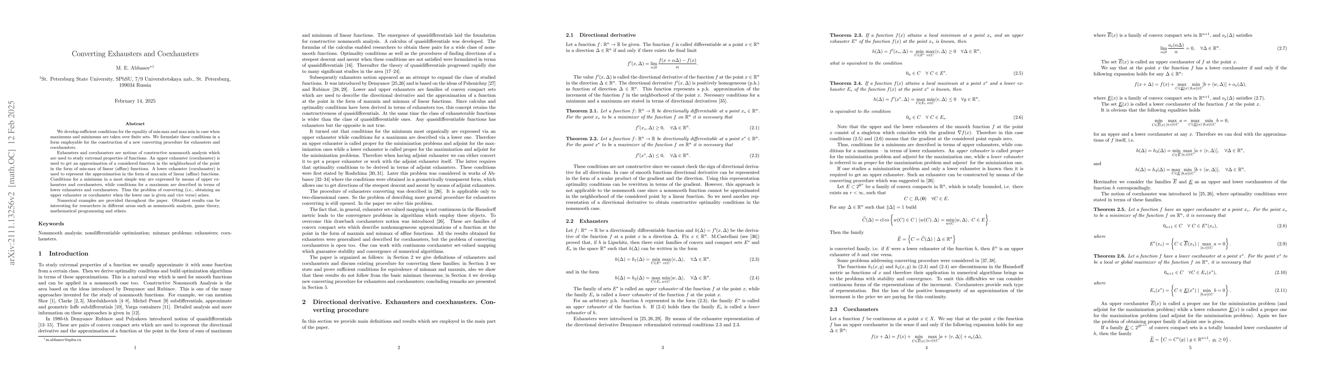 This paper investigates the conversion between exhausters and coexhausters in constructive nonsmooth analysis, proposing a new method to transition between the $\min\max$ and $\max\min$ representations of function approximations, facilitating the determination of extremal properties.