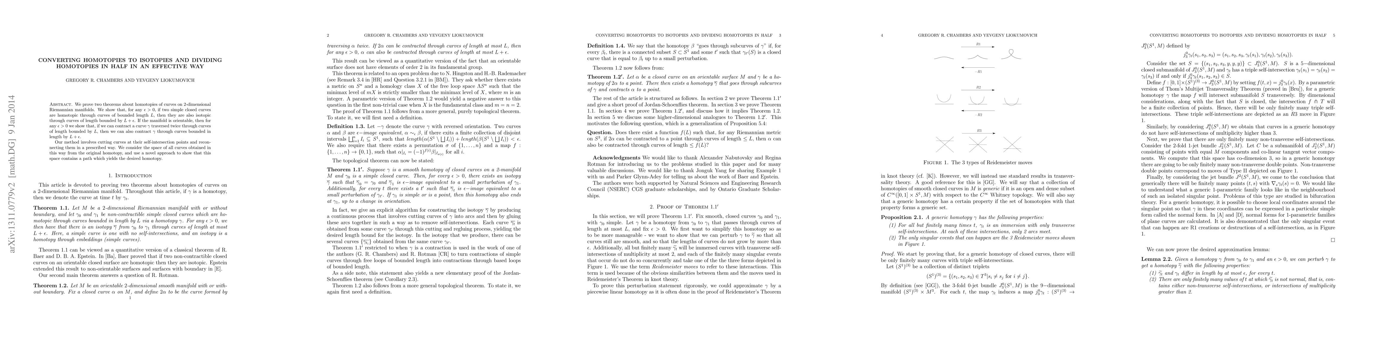 This research proves that homotopic simple closed curves on 2D Riemannian manifolds can be made isotopic with lengths differing by a small epsilon. If the manifold is orientable, it also shows that a curve contracted twice can be contracted similarly within a slightly larger length bound. The method involves cutting and reconnecting curves at self-intersections, demonstrating the existence of a path in curve space to achieve desired homotopies.