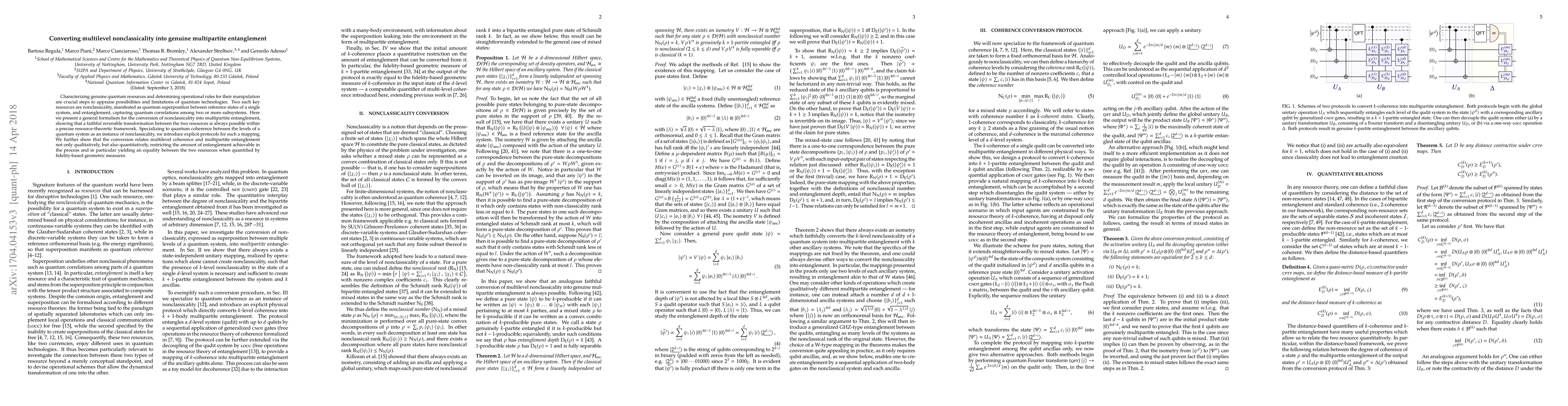 This paper presents a formalism for converting nonclassicality, exemplified by quantum coherence, into genuine multipartite entanglement through a reversible transformation, demonstrating a quantitative and qualitative equivalence between the two quantum resources within a defined resource-theoretic framework.