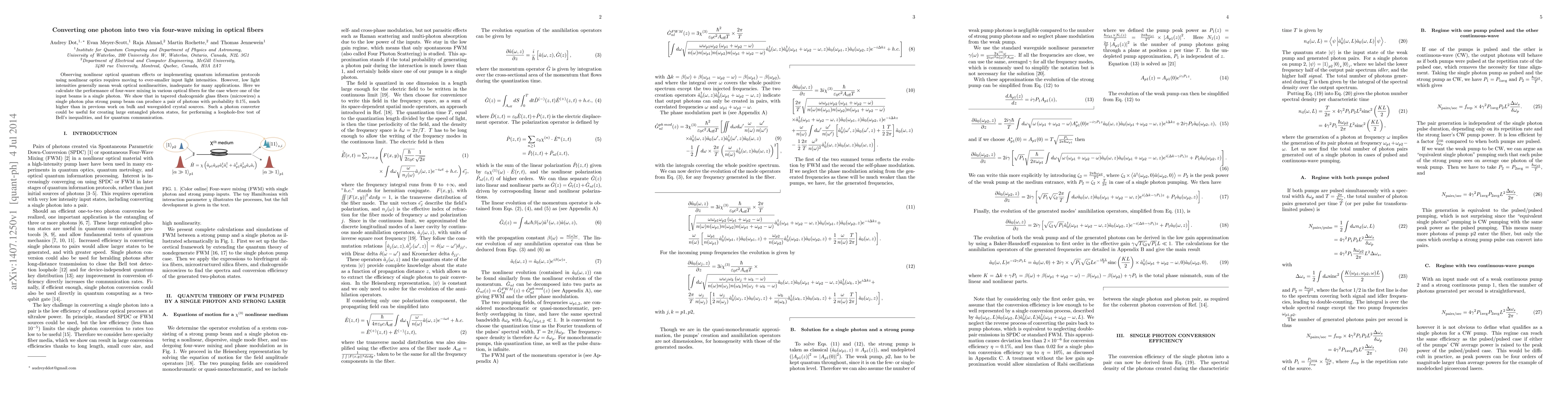 This study demonstrates that four-wave mixing in tapered chalcogenide glass fibers can convert a single photon into two with a higher probability compared to previous methods, potentially enabling applications in quantum communication and entanglement. The efficiency achieved in microwires could facilitate advanced quantum information protocols.