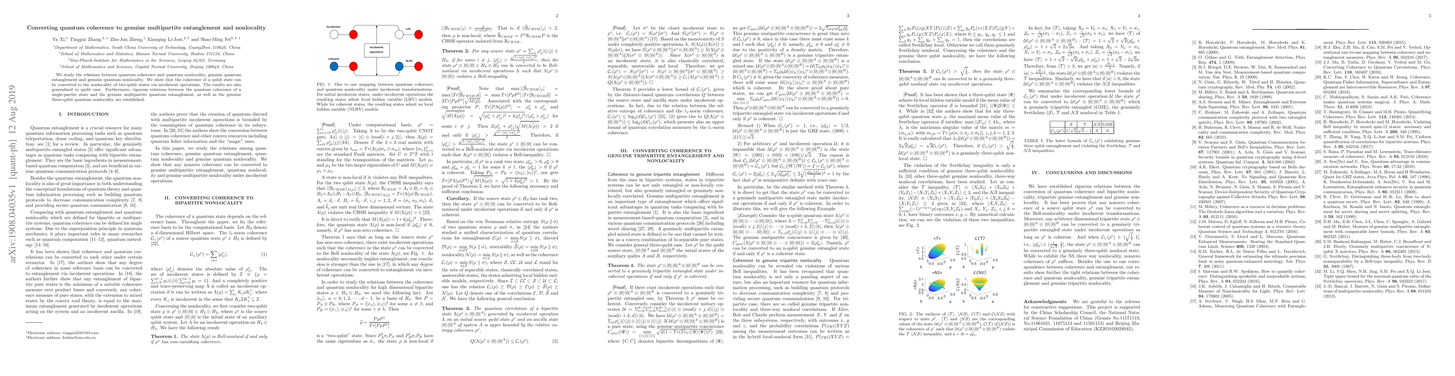 This paper investigates the transformation of quantum coherence into genuine multipartite entanglement and nonlocality, demonstrating that qubit coherence can be converted into two-qubit nonlocality through incoherent operations, with extensions to the qudit case. It also establishes connections between single-partite quantum coherence and genuine multipartite entanglement and three-qubit nonlocality.