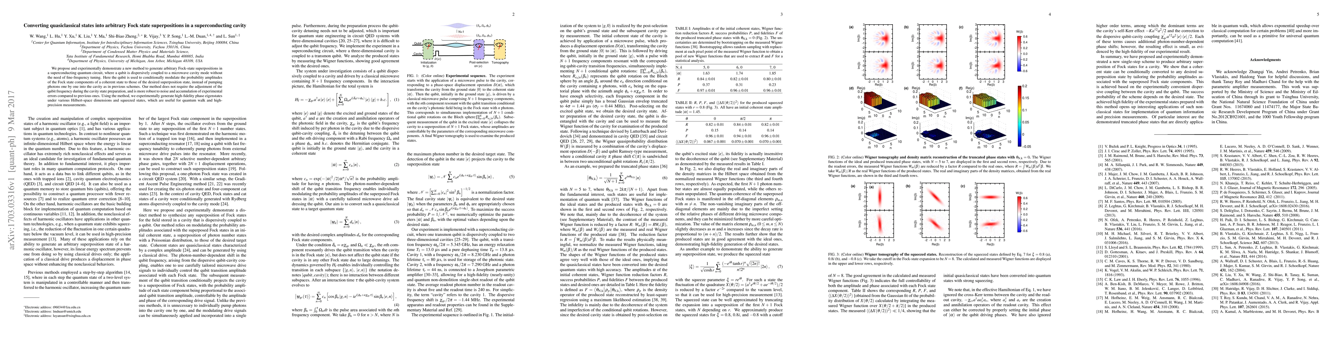 This paper proposes and demonstrates a novel method to create arbitrary Fock-state superpositions in a superconducting cavity using a qubit to conditionally modulate the probability amplitudes of a coherent state, without requiring fine-frequency tuning or qubit frequency adjustments. This method is more robust to noise compared to previous techniques and enables the generation of high-fidelity phase eigenstates and squeezed states.
