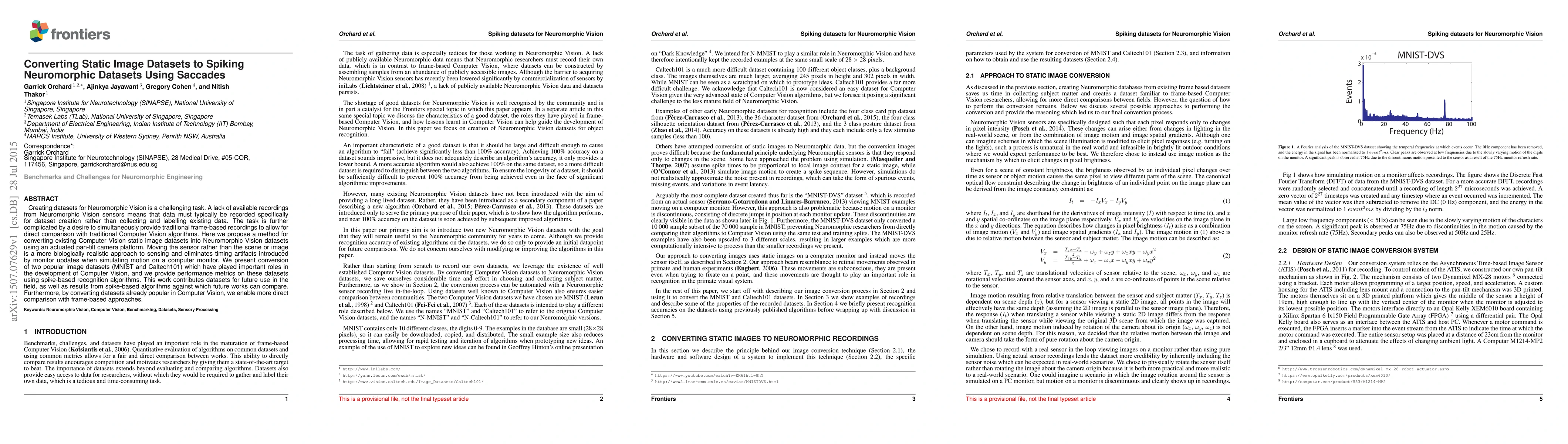This paper proposes a method to convert static image datasets into Neuromorphic Vision datasets using an actuated pan-tilt camera platform, enabling direct comparison with traditional Computer Vision algorithms.