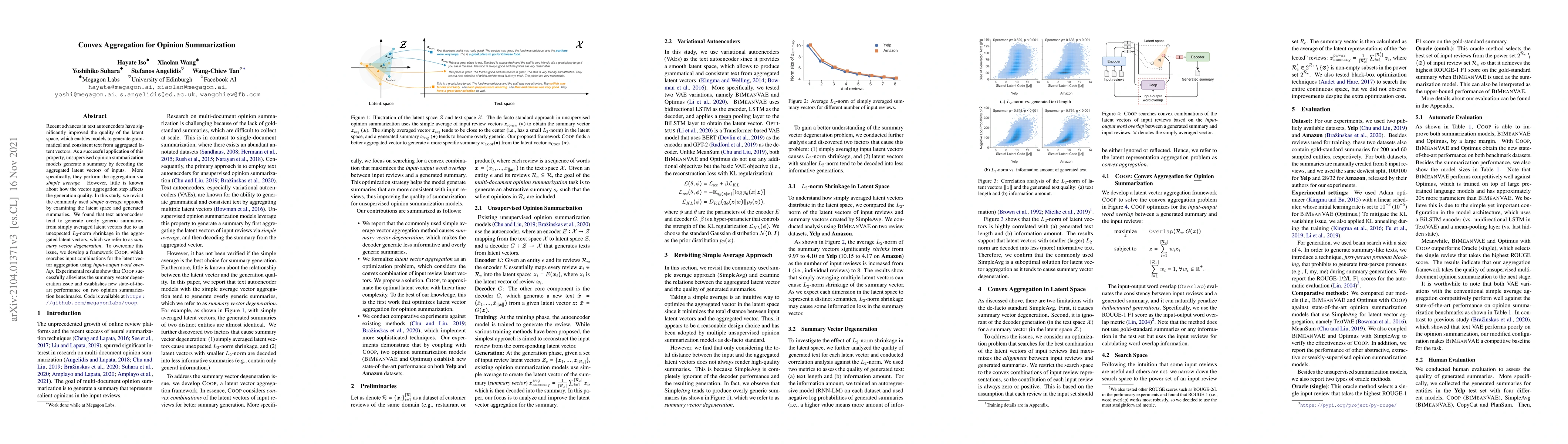 This paper investigates the limitations of simple average aggregation in unsupervised opinion summarization models, revealing an issue termed summary vector degeneration. It proposes Coop, a novel framework that optimizes latent vector aggregation by maximizing input-output word overlap, achieving superior summarization performance.