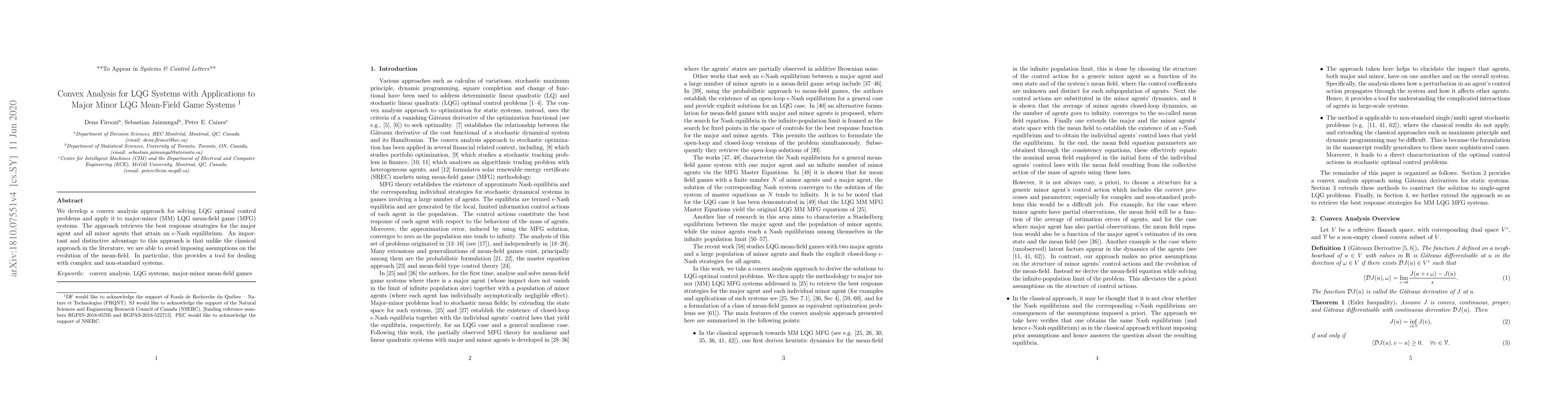 This paper introduces a convex analysis method for solving LQG optimal control problems, specifically applied to major-minor LQG mean-field game systems. It retrieves best response strategies for agents without imposing assumptions on the mean-field evolution, offering a tool for complex, non-standard systems.