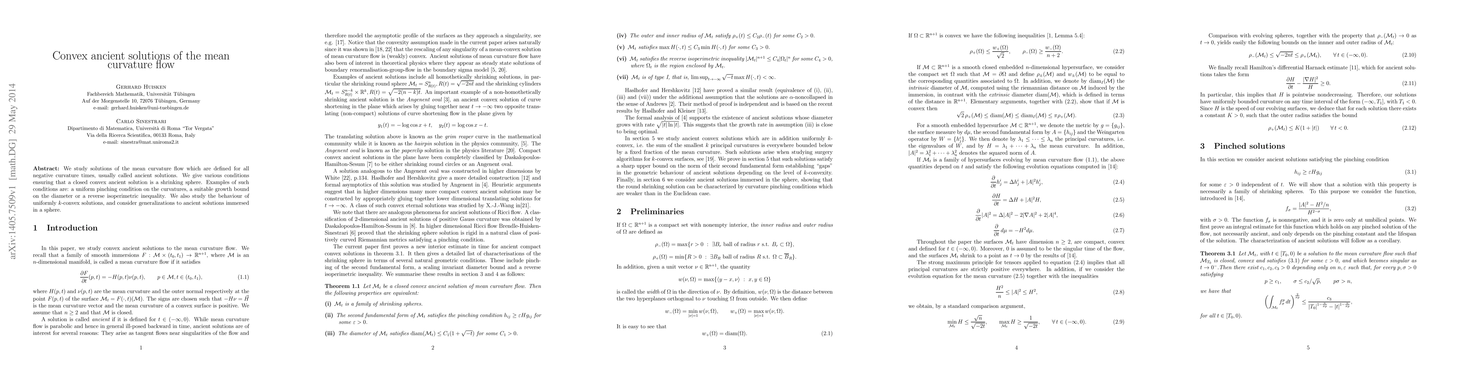 This paper investigates ancient solutions of the mean curvature flow that are closed and convex, proving that under certain conditions such as uniform curvature pinching or diameter growth bounds, these solutions are shrinking spheres. It also explores the behavior of uniformly k-convex solutions and extends the findings to ancient solutions immersed in a sphere.