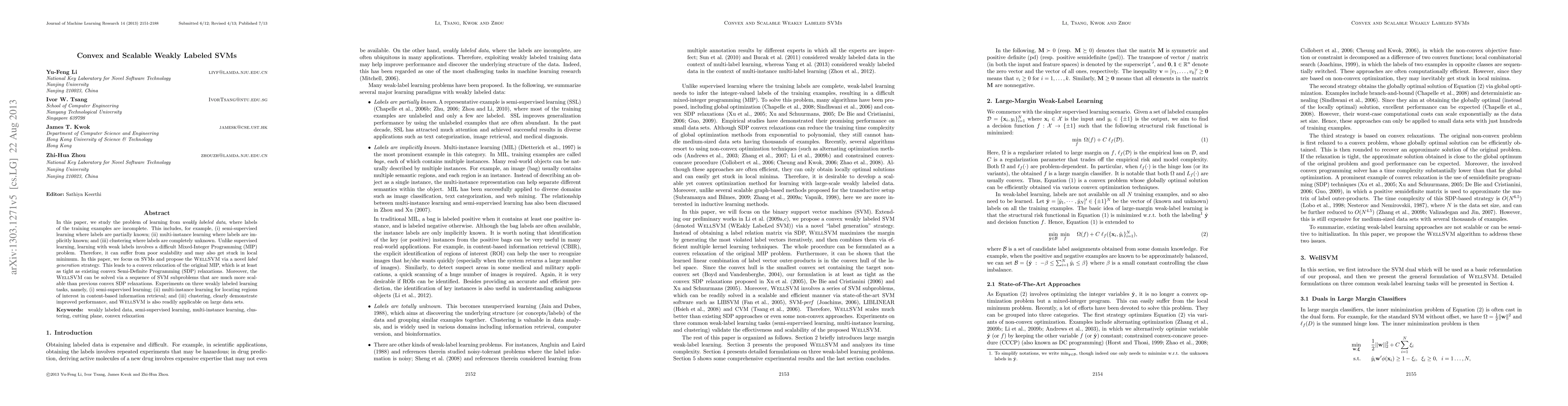 This paper proposes WellSVM, a scalable and convex approach to SVMs for weakly labeled data, addressing the challenges of mixed-integer programming through a novel label generation strategy. This method outperforms existing convex relaxations and demonstrates improved performance across semi-supervised learning, multi-instance learning, and clustering tasks.