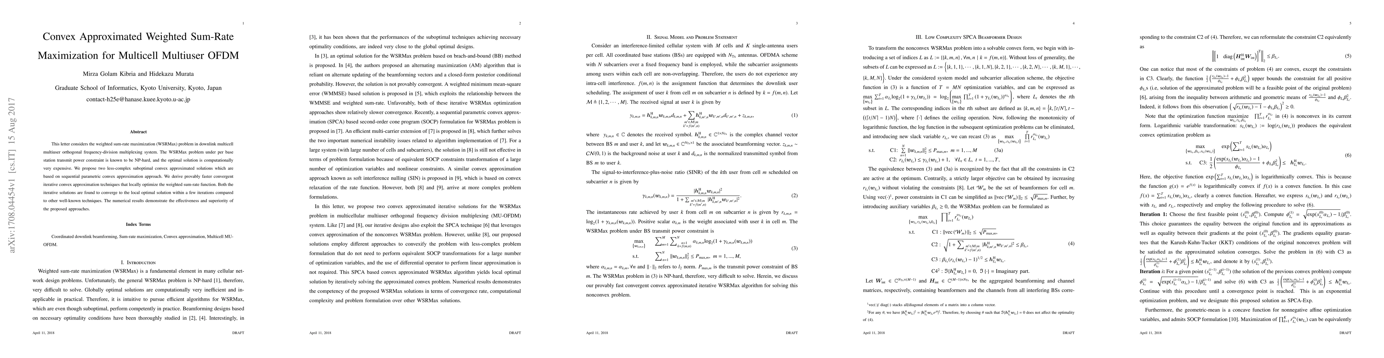 This paper proposes two convex approximated solutions for weighted sum-rate maximization in multicell multiuser OFDM systems, addressing the NP-hard problem with computationally efficient iterative techniques. The proposed methods converge to local optimal solutions faster than existing approaches, as demonstrated by numerical results.