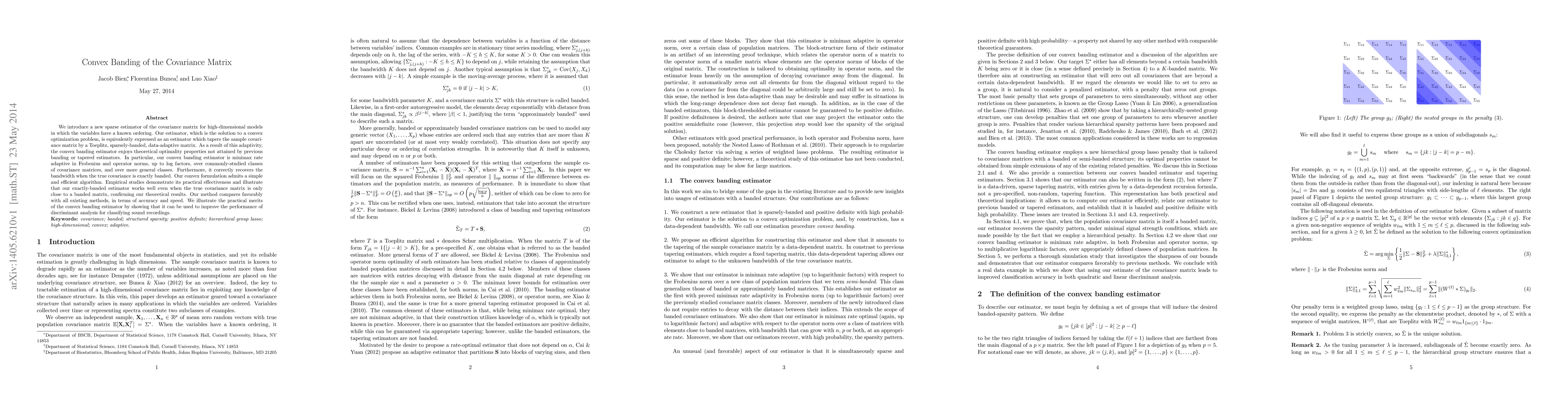 We introduce a new sparse estimator of the covariance matrix for high-dimensional models in which the variables have a known ordering. Our estimator, which is the solution to a convex optimization problem, is equivalently expressed as an estimator which tapers the sample covariance matrix by a Toeplitz, sparsely-banded, data-adaptive matrix. As a result of this adaptivity, the convex banding estimator enjoys theoretical optimality properties not attained by previous banding or tapered estimators. In particular, our convex banding estimator is minimax rate adaptive in Frobenius and operator norms, up to log factors, over commonly-studied classes of covariance matrices, and over more general classes. Furthermore, it correctly recovers the bandwidth when the true covariance is exactly banded. Our convex formulation admits a simple and efficient algorithm. Empirical studies demonstrate its practical effectiveness and illustrate that our exactly-banded estimator works well even when the true covariance matrix is only close to a banded matrix, confirming our theoretical results. Our method compares favorably with all existing methods, in terms of accuracy and speed. We illustrate the practical merits of the convex banding estimator by showing that it can be used to improve the performance of discriminant analysis for classifying sound recordings.