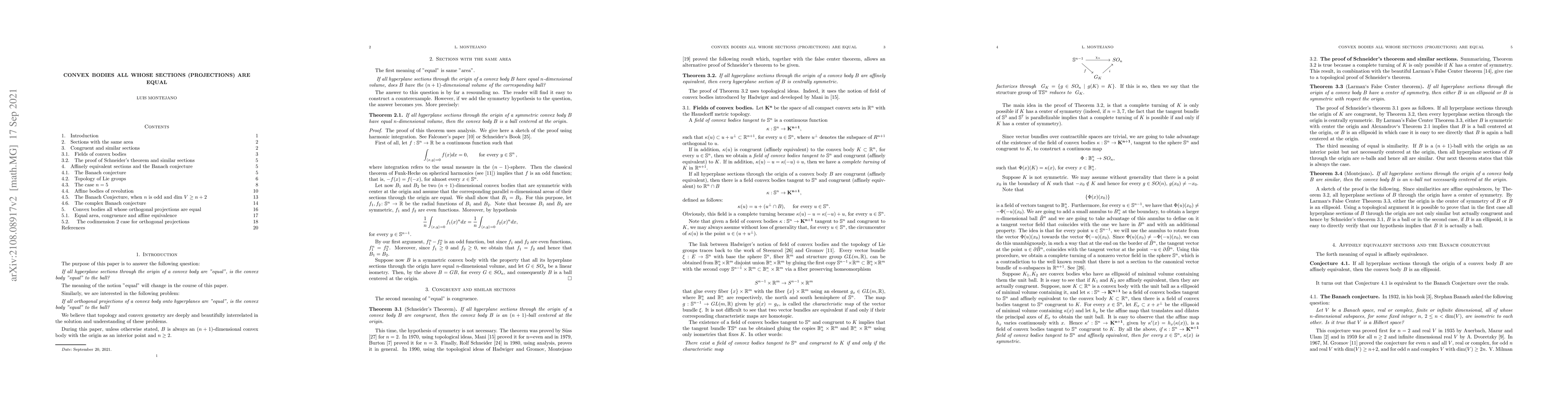 This paper investigates whether a convex body whose hyperplane sections through the origin are all "equal" is necessarily a ball, exploring the concept of "equality" in the context of convex geometry and topology. It also examines if all orthogonal projections of such a convex body onto hyperplanes being "equal" implies the convex body is a ball.